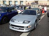 The Z32 version of the 300ZX was a new design, approved in final form by Nissan management on October 1, 1986 and designed by Isao Sono and Toshio Yamashita. The body was wider with a rounder profile and fewer hard edges. It had a marginally increased drag coefficient of .31 compared to the Z31’s .30. Unchanged from the previous generation 300ZX was the displacement of the 2,960 cc (3.0 L) VG30 V6 engine, now with DOHC and variable valve timing (N-VCT), producing 222 bhp at 6,400 rpm and 198 lb/ft (268 Nm) at 4,800 rpm in naturally aspirated (NA) form. The twin turbocharged (TT) variant was upgraded with Garrett AiResearch parallel twin-turbochargers and dual intercoolers producing 300 bhp at 6,400 rpm and 283 lb/ft (384 Nm) of torque at 3,600 rpm. The Z32 was the first car to be marketed following the introduction of the 280 PS power ceiling imposed by JAMA that remained until 2004. Performance varied from 0-60 mph times of 5.0-6.0 seconds depending on the source, and a governed top speed of 155 mph (249 km/h). Twin Turbocharged Z32s also featured adjustable two mode suspension and the four-wheel steering systems called “Super HICAS” (High Capacity Actively Controlled Steering), first introduced on the R31 Nissan Skyline. Nissan utilized the Cray-2 supercomputer to design the new Z32 with a form of CAD software making it one of the first production cars to utilize this tool. Like previous generations, Nissan offered a 4-seater (2+2) model with the Z32. Most Z32s now featured T-tops as standard. A hardtop (Slicktop) model was available in North America, only in Naturally Aspirated guise, and in Japan was available as Naturally Aspirated as well as an extremely rare Twin Turbo model (Japan-only). All “Slicktops” were 2 seaters (2+0). In 1992, a 2-seat convertible version (produced by ASC) was introduced for the first time, in response to after-market conversions. In 1990, Motorsports International of Waco, Texas collaborated with Japanese tuning company HKS to create the SR-71 Z32. The cars were upgraded with larger Garrett turbochargers, HKS electronics and a Kaminari body kit designed for the SR-71 by Pete Brock. The SR-71 was California CARB certified and was to be sold through a select dealer network and Japanese performance tuning shops located within the United States. It was planned to build 500 cars per year through 1993. One hundred orders were already in hand. The exact number is not known. The SR-71 claimed the title of the third fastest production car in the world in 1990 for a fraction of the price of a Lamborghini Diablo and Ferrari F40 according to the designer Randy Ball.[citation needed] The base price was $65,000 for the Z32 and SR-71 conversion. In 1995 and 1996, Steve Millen Motorsports (Stillen), developed a SMZ model with Nissan North America that were sold throughout the U.S. and Canada through designated Nissan dealerships. The performance upgrades were covered by the factory warranty. Each vehicle was numbered in the engine bay and interior. A total of 104 SMZs were produced at $14,000 more than the standard Nissan Z32 Twin Turbo. American Z-car sales reached one million sales during the 1990 model year, making it at that time the best selling sports car. In America the 300ZX faced the same fate of many Japanese sports cars of the time. While the 1989 300ZX was priced at around $30,000, its final model year price increased to about $50,000. The mid-1990s marketplace trends toward SUVs and the rising Yen:Dollar ratio contributed to the end of North American 300ZX sales in 1996 with over 80,000 in sales. A Commemorative Edition for the final 300 units shipped to America included decals and certificates of authenticity. In the UK & Europe, all Z32s offered were in 2+2 TT form between 1990 and 1996 (1990-1994 for UK). They were sold through dealerships in the UK, France, Germany, Belgium and Italy. In Australia, all Z32s offered were in 2+2 NA form between 1990 to 1995. In Japan, the 300ZX continued until August 2000. The Japanese Domestic Market was offered a number of variants unavailable to the international market such as the “Version S” (Spec Model), “Version R” (Ready Model) and Slicktop Twin Turbo (the most expensive trim option only available in Version S guise). The facelift of late 1998 featured a new front fascia, tail lights, optional Xenon HID headlights, optional rear spoiler, optional BBS mesh wheels, orange rear corner lights and an instrument cluster with white dials as well as other minor changes. Early model Z32s (made pre-1994) and sold in Japan did not have Exhaust Gas Recirculation systems nor Air Injection Valve systems. All JDM Z32s used a front rebar system made out of fiberglass rather than steel (like their American Market counterparts), and also had different exhaust systems with lighter weight Catalytic Converters (with only one set on the JDM Twin Turbo model vs. two sets on the USDM Twin Turbo models). Given the lack of these regulatory items, JDM Z32s often weighed 100+lbs (45+kg) less than their American specification counterparts. The Z32 chassis underwent some changes during its production run between 1989 and 2000 (Japan) and 1990 to 1996 (US). The Z32’s extended model year sales in 1990 reached 39,290 units.