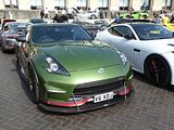 The Nissan 370Z (known as the Fairlady Z Z34 in Japan) is a 2-door, 2-seater sports car (S-segment in Europe) manufactured by Nissan Motor Company. It was announced on October 29, 2006, and was first shown at an event in Los Angeles ahead of the 2008 Greater LA Auto Show, before being officially unveiled at the show itself. The 370Z is the sixth generation of the Nissan Z-car line, succeeding the 350Z. The 370Z marks the last production car with a naturally aspirated and high-rev V6 coupled to a manual transmission. Almost every piece and component of the 370Z has been redesigned from the previous 350Z. The wheelbase is 4 in (100 mm) shorter at 100.4 in (2,550 mm) and an overall length 2.7 in (69 mm) shorter at 167.1 in (4,240 mm). The overall width has been increased by 1.3 in (33 mm), the rear track by 2.2 in (56 mm), and overall height reduced by 0.3 in (7.6 mm). The smaller exterior dimensions and use of more lightweight materials helped reduce weight.