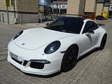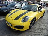 The 991 introduced in 2012 is an entirely new platform, only the third since the original 911. Porsche revealed basic information on the new Carrera and Carrera S models on 23 August 2011. The Carrera is powered by a 350 hp 3.4-litre engine. The Carrera S features a 3.8-litre engine rated at 400 hp. A Power Kit (option X51) is available for the Carrera S, increasing power output to 430 hp. The new 991’s overall length grows by 56 mm (2.2 in) and wheelbase grows by 99 mm (3.9 in) (now 96.5 in.) Overhangs are trimmed and the rear axle moves rearward at roughly 76 mm (3 in) towards the engine (made possible by new 3-shaft transmissions whose output flanges are moved closer to the engine). There is a wider front track (51 mm (2 in) wider for the Carrera S). The design team for the 991 was headed by Michael Mauer. At the front, the new 991 has wide-set headlights that are more three-dimensional. The front fender peaks are a bit more prominent, and wedgy directionals now appear to float above the intakes for the twin coolant radiators. The stretched rear 3/4 view has changed the most, with a slightly more voluminous form and thin taillights capped with the protruding lip of the bodywork. The biggest and main change in the interior is the center console, inspired by the Carrera GT and adopted by the Panamera. The 991 is the first 911 to use a predominantly aluminium construction. This means that even though the car is larger than the outgoing model, it is still up to 50 kilograms (110 lb) lighter. The reduced weight and increased power means that both the Carrera and Carrera S are appreciably faster than the outgoing models. The 0–60 mph acceleration time for the manual transmission cars are 4.6 seconds for the Carrera and 4.3 seconds for the Carrera S. When equipped with the PDK transmission, the two 991 models can accelerate from 0–97 km/h in 4.4 seconds and 4.1 seconds. With the optional sports chrono package, available for the cars with the PDK transmission, the 991 Carrera can accelerate from 0–97 km/h in as little as 4.2 seconds and the Carrera S can do the same in 3.9 seconds. Apart from the reworked PDK transmission, the new 991 is also equipped with an industry-first 7-speed manual transmission. On vehicles produced in late 2012 (2013 model year) Rev Matching is available on the 7-speed manual transmission when equipped with the Sport Chrono package. Rev-Matching is a new feature with the manual transmission that blips the throttle during downshifts (if in Sport Plus mode). Also, the 7th gear cannot be engaged unless the car is already in 5th or 6th gear. One of Porsche’s primary objectives with the new model was to improve fuel economy as well as increase performance. In order to meet these objectives, Porsche introduced a number of new technologies in the 911. One of the most controversial of these is the introduction of electromechanical power steering instead of the previous hydraulic steering. This steering helps reduce fuel consumption, but some enthusiasts feel that the precise steering feedback for which the 911 is famous is reduced with the new system.[citation needed] The cars also feature an engine stop/start system that turns the engine off at red lights, as well as a coasting system that allows the engine to idle while maintaining speed on downhill gradients on highways. This allows for up to a 16% reduction in fuel consumption and emissions over the outgoing models. The new cars also have a number of technologies aimed at improving handling. The cars include a torque vectoring system (standard on the Carrera S and optional on the Carrera) which brakes the inner wheel of the car when going into turns. This helps the car to turn in quicker and with more precision. The cars also feature hydraulic engine mounts (which help reduce the inertia of the engine when going into turns) as part of the optional sports chrono package. Active suspension management is standard on the Carrera S and optional on the Carrera. This helps improve ride quality on straights while stiffening the suspension during aggressive driving. The new 991 is also equipped with a new feature called Porsche Dynamic Chassis Control (PDCC). Porsche claims that this new feature alone has shaved 4 seconds off the standard car’s lap time around the Nürburgring. PDCC helps the car corner flat and is said to improve high-speed directional stability and outright lateral body control, but according to several reviews, the car is more prone to understeer when equipped with this new technology. In January 2013, Porsche introduced the all-wheel-drive variants of the Carrera models. The ‘4’ and ‘4S’ models are distinguishable by wider tyres, marginally wider rear body-work and a red-reflector strip that sits in between the tail-lights. In terms of technology, the 4 and 4S models are equipped with an all-new variable all-wheel-drive system that sends power to the front wheels only when needed, giving the driver a sense of being in a rear-wheel-drive 911. In May 2013, Porsche announced changes to the model year 2014 911 Turbo and Turbo S models, increasing their power to 513 hp on the ‘Turbo’, and 552 hp on the ‘Turbo S’, giving them a 0–97 km/h acceleration time of 3.2 and 2.9 seconds, respectively. A rear-wheel steering system has also been incorporated on the Turbo models that steers the rear wheels in the opposite direction at low speeds or the same direction at high speeds to improve handling. During low-speed manoeuvres, this has the virtual effect of shortening the wheelbase, while at high speeds, it is virtually extending the wheelbase for higher driving stability and agility. In January 2014, Porsche introduced the new model year 2015 Targa 4 and Targa 4S models. These new models come equipped with an all-new roof technology with the original Targa design, now with an all-electric cabriolet roof along with the B-pillar and the glass ‘dome’ at the rear. In September 2015, Porsche in