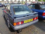 The Lotus Carlton (other names include Vauxhall Lotus Carlton, Lotus Omega and Opel Lotus Omega) is a Vauxhall Carlton/Opel Omega A saloon upgraded by Lotus to be a 177 mph sports saloon with acceleration to equal contemporary supercars. Like all Lotus vehicles, it was given a type designation—Type 104 in this case. The external differences were minimal with the addition of a rear spoiler, vents on the bonnet, Lotus badges on the front wings and bootlid, a bodykit and considerably wider wheel arches distinguishing it from a standard Carlton/Omega. The car was only sold in one colour, a shade called Imperial Green, a very dark green that in anything but direct light appears black. Performance modifications started with an upgraded engine, which was enhanced by Lotus from the standard Opel 2,969 cc 24v straight six unit (used in the GSi). The engine was enlarged to a capacity of 3,615 cc Lotus then added Garrett AiResearch T25 twin-turbochargers, which provide up to 0.7 bar (10 psi) of boost from about 1500 rpm. The original distributor ignition system of the engine was replaced with a three-coil wasted spark system. The distributor drive was re-purposed as a water pump drive for the water-air intercooler circuit. The intercooler itself is manufactured by Behr and is capable of reducing the temperature of the compressed charge from 120 °C to 60 °C. In addition to fitting two turbochargers and an intercooler system, Lotus directed a number of engineering changes to the engine so that it would perform reliably with the higher power output. To cope with the higher cylinder pressures (about 95 bar (9,500 kPa)), the external webbing on the engine block was reinforced. The crankshaft was replaced as well; early development crankshafts were machined from billet steel in Italy, but the production units were forged by Opel and sent to Maschinenfabrik Alfing Kessler for machining. The cylinder head was left mostly the same as the 4 valves per cylinder from the Opel Omega, although the combustion chamber was milled to reduce the static compression ratio to 8.2:1 (from 10.0:1). The engine was fitted with forged slipper pistons produced by Mahle. Piston connecting rods were replaced with new units made to an original Lotus design. The same ZF 6-speed manual transmission as fitted to a contemporary Chevrolet Corvette ZR-1 was used to transfer this power to the rear wheels via a rear limited-slip differential from the V8 Holden Commodore. The multi-link suspension of the Omega, already praised by the automotive press, was modified by Lotus for better high-speed stability and improved handling dynamics. To combat the problem of significant camber change (seen with the car at high speed and when fully laden), the self-levelling suspension from the Opel Senator was fitted. Also borrowed from the Senator was the Servotronic power steering system, which provides full power assist at parking speeds, and reduces the power assist as the road speed increases. The Lotus engineers would have preferred using a rack and pinion steering arrangement, but cost and space constraints limited them to the worm-and-roller arrangement. The Lotus Carlton produced 377 bhp at 5,200 rpm and 419 lb⋅ft (568 N⋅m) at 4,200 rpm of torque, of which 350 lb⋅ft (470 N⋅m) was available from 2000 rpm. The car is capable of 0–60 mph in 5.2 seconds and achieve 0–100-0 mph in less than 17 seconds. Tall gearing allows it to achieve approximately 55 mph in first gear. The Lotus Carlton/Omega held the title of the second fastest four-door saloon car for some years, after Alpina B10 Bi-Turbo. The Carltons/Omegas were a favourite target of joyriders and other thieves. This posed a problem for the police, who had nothing quicker than the 24V Senator Bs. Because the Carlton/Omega could equal or exceed the performance of many contemporary sports cars while also carrying four passengers, it generated some controversy among the automotive and general press. Bob Murray, then editor of Autocar magazine, wrote: “Nobody buying this car could possibly argue he either needs or will be able to use a top whack which is claimed to be around 180 mph.” Murray went on to suggest that Vauxhall should follow the example set by German automakers (who had begun electronically limiting the top speed of their high-performance cars to 155 mph.) This sentiment was picked up by newspapers and talk radio stations, who would interview people calling for the car’s ban. Ultimately, the Opel executives associated with the project voted unanimously to not restrict the car’s top speed, and it was released to acclaim from the motoring press. Production of the Lotus Carlton/Omega began in 1990, four years after the original Omega went on sale. Opel had hoped to build 1,100 cars in total, but owing to the recession of the early 1990s, the £48,000 cars were not selling as well as anticipated and production at Lotus was halted in December 1992. Only 950 cars were completed: 320 Carltons and 630 Omegas, 150 short of the original target. The cars are now starting to become modern classics as low-mileage, well-looked-after examples become rare.
