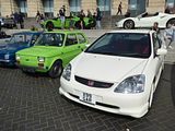 In 2001, Honda introduced the next generation of the Civic Type R as a unique 3-door hatchback to the UK market, which was manufactured in Swindon, England. This European Domestic Market Civic Type R featured a 200 PS 2.0-litre i-VTEC engine (K20A2) and the regular Type R treatment of seam welding, close-ratio 6-speed transmission and upgraded brakes, but did not include some of the other higher-end features, such as the helical LSD and red Recaro race-seats, that were standard on the EK9. However, Honda marketed a JDM (Japanese domestic market) version of the EP3 (which was exclusively manufactured in Swindon, UK and was shipped to Japan), which retained the highly renowned helical LSD similar to that of the EK9 and red Recaro race-seats. Other differences of the JDM model included a more track-oriented chassis/undercarriage settings as compared to the European model as well as a more powerful engine having a power output of 215 PS (designated K20A) had a fully balanced crankshaft assembly with the different intake manifold, exhaust manifold, higher-lift camshafts, higher-compression pistons, chrome-moly flywheel and ECU programming. All of the Japan-spec K20A Type R powertrains were built in Japan and shipped to the Swindon plant to be installed in the Japan-spec Type-R EP3. The JDM EP3 was also available in the traditional Type R Championship White while the EDM was not. The EDM has more relaxed gear ratios and some high rpm torque traded for low rpm torque compared to the JDM. In 2003, the EP3 was updated with many improvements – revised EPS with quicker steering, revised suspension settings, projector headlamps (JDM came equipped with halogens only while the EDM came with an option for HIDs with self-leveling motors), lighter clutch and flywheel assembly, etc. Based on Honda literature, this facelifted (FL) model was targeted at addressing customers’ and critics’ feedback such as understeer on the limit (due to the front MacPherson strut setup), numb steering response and lack of low-end torque. Mugen Motorsports developed an upgraded version of the JDM Civic Type R, with a sport exhaust system and engine tuning, special Mugen Grille, and anti-roll bars for pro racing activities. In 2003 Honda celebrated 30 years of the Civic badge by offering a special edition 30th Anniversary Civic Type R. This special edition features red bucket seats from Recaro, Air Conditioning, privacy glass on the rear windows, a leather MOMO steering wheel, red interior carpet and door cards. The 30th Anniversary models in the UK were available in Nighthawk Black, Satin Silver and Milano Red. Only 300 of these models were produced, 100 in each colour. In 2005 towards the end of the EP3’s production run, Honda introduced the Civic Type R Premier edition which had Recaro Trendline seats (similar to those found in the Anniversary Edition, only in red and black rather than all red), a darker shade of fabric on the rear seat centre sections, a MOMO Steering Wheel, Red Carpet, Door Linings, “Type R” embossed into the front brake calipers and black privacy glass on the rear windows. Air conditioning was an option. They were available in Milano Red, Nighthawk Black, Cosmic Grey and Satin Silver. In 2004 Honda introduced the “C Package” option (¥330,000 JPY) to Japan’s Civic Type R line-up which included an additional colour, Satin Silver Metallic, HID lighting, rear privacy glass, automatic air conditioner and outside air temperature sensor. For the last production year (2005), the EP3 Type R was offered in Vivid Blue Pearl for the European Market. A total of 132 EP3’s, which were all left-hand drive, were produced in Vivid Blue Pearl.