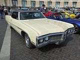 There were two examples of the third generation Electra 225 here, from either end of the production cycle, with an early car from 1965 and a 1970 Electra 225 Hardtop. All GM passenger vehicles received a major redesign in 1965 dominated by flowing “Coke bottle” lines and fastback roof profiles on its coupe models, and the 6 window-body style was eliminated. For 1965, Buick also changed its marketing strategy and offering the Electra 225 in two trim levels, base and Custom. Along with the new body came a new chassis with a full perimeter frame including side rails that replaced the previous “X” frame used since 1961. Engine offerings were unchanged from 1964 including the standard 325 bhp 401 V8, and two versions of the larger 425 V8 that were rated at 340 bhp with a four-barrel carburettor or 360 bhp with two four barrels. The three-speed Super Turbine 400 automatic transmission was standard equipment. A new body style introduced for 1965 was the thin-pillar 4-door sedan, which featured frameless window glass with a thin, chrome fixed “B” pillar. The 1966 Electra 225 saw only minor styling changes including a new grille and a revised full-width taillight and trunk lid that included an “Electra 225” script rather than the “BUICK” nameplate spelled out in 1965. Engine offerings were unchanged from 1965 with the exception that the dual-quad 360 bhp 425 was downgraded from a factory option to dealer-installed. Inside, a revised instrument panel featured a horizontal sweep speedometer, fuel gauge and warning lights. Front seat headrests became an option. A moderate facelift highlighted the 1967 Electra 225 including a Pontiac/Oldsmobile-like divided split grille. Both base and Custom models were continued with a new “Limited” option package available Electra 225 Custom 4-door hardtop reviving a nameplate that graced Buick’s ultra-luxury flagship in the late 1930s (and again in 1958), which included an ultra-luxurious interior trim. Under the hood a new 430 cubic-inch V8 rated at 360 bhp with four-barrel carburettor replaced the previous “Nailhead” 401 and 425 V8s. Power front disc brakes were available as a new option along with a stereo 8-track tape player. The 1968 Electra 225 received a revised grille and taillight trim along with concealed windshield wipers. Inside, there was a revised instrument panel with a square speedometer and other instruments, plus a new steering wheel. Shoulder seat-belts were standard for both the driver and front passenger. Base and Custom models were still offered, with the Limited trim option available on the Electra 225 Custom hardtop sedan. 1969 brought a major restyling to the Electra 225 and other GM B-body and C-body cars with somewhat crisper bodylines than 1965–68 models, but continued with the same chassis and inner body structure introduced with the 1965 model, however the wheelbase was increased one inch to 127 in (3,226 mm). The 1969s were also the first to offer headrests as standard equipment due to a federal safety mandate, and the steering column with ignition switch that also locked the steering wheel with the transmission in “Park”, a feature found on all 1969 GM cars one year before it became a federal safety mandate in 1970. Also new was a variable-ratio power steering system combined with revised front suspension tuning called “Accu-Drive.” Other changes included ventless front windows. The same assortment of base and Custom models were offered in 1969 with the “Limited” trim package available on Custom sedans and coupes. A new option available with the Limited package was a split 60/40 bench seat with center armrest. Finned aluminum drum brakes were again offered as standard equipment, while the Bendix four-piston disk brake units were also available. 12″ x 1″ vented steel rotors were coupled with the cast iron caliper assemblies. A dual exhaust was available as an option. Five different rear axles were available: a 2.56 Economy as well as 2.73, 3.08, 3.23:1 gear ratios. The special PX-Code “AC Delete” 3.91 performance gear option was also available. The standing quartermile was completed in 15.5 seconds at a terminal velocity of 90 mph (145 km/h) for the dual exhaust engine with the 2.73 gear ratio in a 4,700 lb (2,132 kg) Custom Convertible. Only a minor facelift with revised grille and taillight trim marked the 1970 Electra 225. The big news was under the hood, where a new 370 hp 455 cubic-inch V8 replaced the 430 V8 used from 1967 to 1969. This was the final year for the Electra convertible, finned aluminum brake drums and high compression engines. New this year was a concealed radio antenna, which amounted to two wires embedded in the windshield. Also new for 1970 was the Estate Wagon, which shared the Electra’s 455 V8 and four VentiPorts, but was a B-body car like the LeSabre and the Wildcat and consequently shared the smaller cars’ 124.0-inch (3,150 mm) wheelbase and interior. This was Buick’s first full-sized station wagon since 1964. The following year the Buick Estate would move up to Electra’s larger body and more voluminous interior.