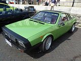 Considered to be part of the Beta family, though there is an awful lot about the car that is very different from the front wheel drive models was the MonteCarlo, no fewer than eight examples of which were displayed. First conceived in 1969, with a a final design completed by 1971 by Paolo Martin at Pininfarina, what was initially known as the Fiat X1/8 Project, was originally designed as Pininfarina’s contender to replace Fiat’s 124 Coupe, but it lost out to Bertone’s cheaper design, which became the Fiat X1/9. Rather than scrap the proposal completely, it was developed further, when Fiat commissioned Pininfarina to build a 3.0 litre V6 mid-engined sports car. An X1/8 chassis was used as the start point, and developed for the first time in-house by Pininfarina and not based on any existing production car. Due to the 1973 Oil Crisis, the project was renamed X1/20 and updated to house a 2.0 litre engine. The first car to be made out of the X1/20 Project was the Abarth SE 030 in 1974. The project was passed to Lancia, and the road car was launched at the 1975 Geneva Motor Show as the Lancia Beta MonteCcarlo. It was the first car to be made completely in-house by Pininfarina. Lancia launched the MonteCarlo as a premium alternative to the X1/9, with the 2 litre twin cam engine rather than the X1/9’s single cam 1300. Both used a similar, based on the Fiat 128, MacPherson strut front suspension and disc brakes at both front and rear. Lancia Beta parts were limited to those from the existing Fiat/Lancia standard parts bin, the transverse mount version of the Fiat 124’s twin cam engine and the five speed gearbox and transaxle. MonteCarlos were available as fixed head “Coupés” and also as “Spiders” with solid A and B pillars, but a large flat folding canvas roof between them. Sales were slow to get started, and it soon became apparent that there were a number of problems with a reputation for premature locking of the front brakes causing particular alarm. Lancia suspended production in 1979 whilst seeking a solution, which meant that the car was not produced for nearly two years. The second generation model, known simply as MonteCarlo now, was first seen in late 1980. The braking issue was addressed by removing the servo, as well as few other careful mechanical tweaks. The revised cars also had glass panels in the rear buttresses, improving rear visibility somewhat, and there was a revised grille. In the cabin there was a new three spoke Momo steering wheel in place of the old two spoke one, as well as revamped trim and fabrics. The engine was revised, with a higher compression ratio, Marelli electronic ignition and new carburettors which produced more torque. It was not enough for sales to take off, and the model ceased production in 1982, although it took quite a while after that to shift all the stock. Just under 2000 of the Phase 2 cars were made, with 7798 MonteCarlos made in total.