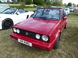 Conceived as a replacement for the popular Beetle Cabrio, and at the time unique in the market place, a convertible version of the Golf was presented to Volkswagen’s management by coachbuilder Wilhelm Karmann GmbH as early as 1976. This early prototype lacked the roll-over bar of the later version, and had a flat body line in the rear, where the soft top folded down below the sill level. The production version of the convertible Golf was designated Type 155. In Europe and Canada it was called the Golf Cabriolet, while in the United States it was sold as the Rabbit Convertible until 1985, when it was also renamed “Cabriolet”. The Cabriolet was sold from 1980 to 1993. It had a reinforced body, a transverse roll-over bar, and a high level of trim. From stamping to final assembly the Mk1 Cabriolet was built entirely at the Karmann factory. Volkswagen supplied engines, suspension, and interior trim for Karmann to install. The tops, of vinyl or cloth, were heavily insulated, with a heated glass rear window. The top was raised and lowered manually until 1991, when it became electrically operated. The body of the Cabriolet did not change through the entire production run except for a larger fuel tank. It kept the pre-1980 style of rear lamp clusters. A space saver spare wheel was fitted from the outset, including 1978 pre-production models, unlike the saloon which did not adopt this until 1984. All Cabriolets from 1988 on left the factory fitted with a “Clipper” bodykit that featured smooth body-coloured bumpers, wheel-arch extensions, and side skirts. Prior to the 1984 model year the highest standard specification Cabriolet was the GLI, which was essentially a GTI in all but name. It was only in late 1983 with the introduction of the 1984 model that an officially badged GTI version of the cabriolet finally became available.
