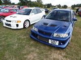 The Mitsubishi Lancer Evolution VIII appeared in 2003 this time sporting 17″ grey Enkei wheels, Brembo brakes and Bilstein shocks to handle traction and a 5-speed manual gearbox with 280 PS. Originally a one off model, sales were so successful in the U.S. that by 2005 it was available in four trims: the standard GSR model in Japan, the RS, 5-speed gearbox, and standard wheels (lacking excess components, such as interior map lights, power windows/doors, and radio), the SSL (with a sunroof, trunk mounted subwoofer, and leather seats) All of which had chrome head and taillight housings, and the MR, which came with a revised front limited-slip differential, aluminium MR shift knob, handbrake with carbon fibre handle, 17 inch BBS wheels, aluminum roof, and a 6-speed manual gearbox. The new Evolution Mr also sported Black housing taillights and headlights. The Mitsubishi Lancer Evolution VIII MR used slick-response Bilstein shocks for improved handling. The aluminium roof panel and other reductions in body weight have lowered the centre of gravity to produce more natural roll characteristics. Detail improvements have also been made to Mitsubishi’s own electronic four-wheel drive, to the ACD 5 + Super AYC 6 traction control, and to the Sports ABS systems. The Lancer Evolution VIII displayed at the 2003 Tokyo Motor Show took the MR designation traditionally reserved for Mitsubishi Motors high-performance models (first used for the Galant GTO). Other parts on the MR include BBS alloy wheels, the aforementioned Bilstein shocks, and an aluminium roof. In the United Kingdom, many special Evolutions were introduced, including the 260, FQ300, FQ320, FQ340, and FQ400 variants. They came with 260, 305, 325, 345, and 405 hp. The FQ-400, sold through Ralliart UK, produced 411 PS at 6,400 rpm and maximum torque of 481 Nm (355 lb/ft) at 5,500 rpm, from its 1,997 cc 4G63 inline-four engine, the result of special modifications by United Kingdom tuning firms Rampage Tuning, Owen Developments, and Flow Race Engines. At 202.8 hp per litre, it has one of the highest specific outputs per litre of any road car engine. With a curb weight of 1,450 kg (3,197 lb), it achieves 0–60 mph in 3.5 seconds, 0–100 mph (161 km/h) in 9.1 seconds, 1⁄4 mile (402 m) in 12.1 seconds at 117 mph (188 km/h), and a top speed of 175 mph (282 km/h) while costing £48,000. BBC’s television series Top Gear demonstrated that the stock FQ-400 could keep up with a Lamborghini Murciélago around a test track. The Stig recorded a Top Gear Power Lap Time of 1 minute and 24.8 seconds (damp track), 1.1 seconds slower than the Murciélago’s time of 1 minute 23.7 seconds (dry track). In a similar test conducted by Evo magazine, the Evolution was able to lap the Bedford Autodrome faster than an Audi RS4 and a Porsche 911 Carrera 4S. The Lancer Evolution VIII was also the first Evolution to be sold in the United States of America, spurred by the success of the Subaru Impreza WRX which had been released there just the year prior. The Evolution VIII found its true competition in the Subaru Impreza WRX STI model the same year as the Evolution VIII’s US introduction. With its 2.0 litre, 271 hp engine, the 2003 Evolution VIII was capable of achieving a 0–100 km/h (62 mph) time of 5.1 seconds. However, the internal components for the American versions were largely stripped-down versions of the specifications for the Japanese Lancer Evolution VIII. No US-spec Evolution model prior to the Evo X has active yaw control, including the 2006 Evolution IX. The American 2003 and 2004 GSRs are without the helical limited-slip front differential and 6-speed manual transmission. The 2004 US spec RS models, however, do have a front helical limited-slip differential. All 2003, 2004 and 2005 RS and GSR models have the Japanese Evolution VII’s 5-speed transmission. The MR edition was introduced to the US in 2005, with ACD and the only model with a 6-speed transmission. The 2005 US spec RS and GSR have the ACD standard, and the front helical limited-slip differential is now standard on all models. The boost, timing, and tuning are also significantly lower than its Japanese counterpart, allowing it to adhere to the strict emissions regulations of the United States. Starting in 2005, the US model Evos were also fitted with a 5500 rpm limit on launching in 1st gear to protect the drivetrain. Most Evolution VIIIs have a carbon fibre rear spoiler with matching body-colour endplates. Furthermore, the US versions of the Lancer Evolution VIII 2003–2005 were given bulkier rear bumpers than their Japanese counterparts to accommodate US safety laws in the form of the metal rear crash bar. All Evos have lightweight aluminum front fenders and hoods. The basic RS Edition does not come with power windows, locks, or mirrors, an audio system, rear wing, sound deadening material, map lamps or an anti-lock braking system. All Evo VIII RS models sold in the US have an air conditioning system. The 2005 MR/RS editions came with an aluminium roof. Additionally, Evolution VIII MR Editions come equipped with a 6-speed transmission, Bilstein shocks, optional graphite grey color (unique to the Evolution VIII MR), optional BBS wheels and an optional vortex generator. The MR Edition also received engine updates and reliability changes, the engine updates include larger turbo diameter mouth, updated cam profiles, lighter balance shafts and changed from single wastegate solenoid to dual solenoid. Exterior changes included HID headlights, updated tail lights, and MR rear badging. Interior updates included black suede Recaro seats with higher side bolsters, carbon look dash trim, and MR badging on center console. Mechanical changes saw S-AWC rear diff changes, a larger oil cooler core, ion coated piston rings, reinforced cylinder head and 5 layer head gasket compared to the 3 layer. The car seen here is an Evo VIII MR FQ 340.