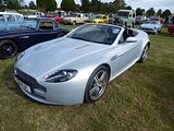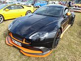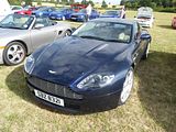 Following the unveiling of the AMV8 Vantage concept car in 2003 at the North American International Auto Show designed by Henrik Fisker, the production version, known as the V8 Vantage was introduced at the Geneva Motor Show in 2005. The two seat, two-door coupé had a bonded aluminium structure for strength and lightness. The 172.5 inch (4.38 m) long car featured a hatchback-style tailgate for practicality, with a large luggage shelf behind the seats. In addition to the coupé, a convertible, known as the V8 Vantage Roadster, was introduced later in that year. The V8 Vantage was initially powered by a 4.3 litre quad-cam 32-valve V8 which produced 380 bhp at 7,300 rpm and 409 Nm (302 lb/ft) at 5,000 rpm. However, models produced after 2008 had a 4.7-litre V8 with 420 bhp and 470 Nm (347 lbft) of torque. Though based loosely on Jaguar’s AJ-V8 engine architecture, this engine was unique to Aston Martin and featured race-style dry-sump lubrication, which enabled it to be mounted low in the chassis for an improved centre of gravity. The cylinder block and heads, crankshaft, connecting rods, pistons, camshafts, inlet and exhaust manifolds, lubrication system and engine management were all designed in house by Aston Martin and the engine was assembled by hand at the AM facility in Cologne, Germany, which also built the V12 engine for the DB9 and Vanquish. The engine was front mid-mounted with a rear-mounted transaxle, giving a 49/51 front/rear weight distribution. Slotted Brembo brakes were also standard. The original V8 Vantage could accelerate from 0 to 60 mph in 4.8 seconds before topping out at 175 mph. In 2008, Aston Martin introduced an aftermarket dealer approved upgrade package for power and handling of the 4.3-litre variants that maintained the warranty with the company. The power upgrade was called the V8 Vantage Power Upgrade, creating a more potent version of the Aston Martin 4.3-litre V8 engine with an increase in peak power of 20 bhp to 400 bhp while peak torque increased by 10 Nm to 420 Nm (310 lb/ft). This consists of the fitting of the following revised components; manifold assembly (painted Crackle Black), valved air box, right and left hand side vacuum hose assemblies, engine bay fuse box link lead (ECU to fuse box), throttle body to manifold gasket, intake manifold gasket, fuel injector to manifold seal and a manifold badge. The V8 Vantage had a retail price of GB£79,000, US$110,000, or €104,000 in 2006, Aston Martin planned to build up to 3,000 per year. Included was a 6-speed manual transmission and leather-upholstery for the seats, dash board, steering-wheel, and shift-knob. A new 6-speed sequential manual transmission, similar to those produced by Ferrari and Lamborghini, called Sportshift was introduced later as an option. An open-topped model was added to the range in 2006 and then in the quest for more power a V12 Vantage joined the range not long after. There were no fewer than 18 different versions of the car produced over its model life