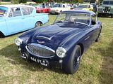 Donald Healey had been producing a range of expensive sports cars from the 1940s, cars such as the Silverstone, the Abbott and the Farnham. For the 1952 London Motor Show, he produced a new design, which was called the Healey Hundred, based on Austin A90 mechanicals, which he intended to produce in-house at his small car company in Warwick. It was one of the stars of the 1952 Show, and it so impressed Leonard Lord, the Managing Director of Austin, who was looking for a replacement to the unsuccessful A90. that Lord struck a deal with Healey on the spot, to build it in quantity. Bodies made by Jensen Motors would be given Austin mechanical components at Austin’s Longbridge factory. The car was renamed the Austin-Healey 100, in reference to the fact that the car had a top speed of 100 mph. Production got under way in 1953, with Austin-Healey 100s being finished at Austin’s Longbridge plant alongside the A90 and based on fully trimmed and painted body/chassis units produced by Jensen in West Bromwich—in an arrangement the two companies previously had explored with the Austin A40 Sports. By early 1956, production was running at 200 cars a month, 150 of which were being sold in California. Between 1953 and 1956, 14,634 Austin-Healey 100s were produced, the vast majority of them, as was the case for most cars in this post war era, going for export. The car was replaced by an updated model in 1956, called the 100-6. It had a longer wheelbase, redesigned bodywork with an oval shaped grille, a fixed windscreen and two occasional seats added (which in 1958 became an option with the introduction of the two-seat BN6 produced in parallel with the 2+2 BN4), and the engine was replaced by one based on the six-cylinder BMC C-Series engine. In 1959, the engine capacity was increased from 2.6 to 2.9 litres and the car renamed the Austin-Healey 3000. Both 2-seat and 2+2 variants were offered. It continued in this form until production ceased in late 1967. The Big Healey, as the car became known after the 1958 launch of the much smaller Austin-Healey Sprite, is a popular classic now. You come across the 3000 models more frequently than the 100s, as they accounted for more than 60% of all Big Healey production.