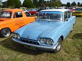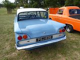One of the shortest lived of all Ford models is the Consul Classic and Capri ranges. The Ford Consul Classic is a mid-sized car that was launched in May 1961 and built by Ford UK from 1961 to 1963. It was available in two or four door saloon form, in Standard or De Luxe versions, and with floor or column gearshift. The name Ford Consul 315 was used for export markets. The Ford Consul Capri was a 2-door coupé version of the Classic, and was available from 1961 until 1964. The 1,340 cc four-cylinder engine was replaced in August 1962 by an over-square 1,498 cc engine with a new five-bearing crankshaft and a new gearbox with syncromesh on all four forward ratios. Steering and suspension also received “greased for life” joints. The Classic (and related Consul Capri) had the right-hand-drive and home market Ford code of 109E (but 110E if L.H.D.) for 1961–1962 models with 1340cc engines, or 116E (but 117E for L.H.D.) for 1962–63 manufacture with 1500cc engines. Those codes also distinguish the gearboxes and steering components which are not greasable on later cars, so cutting first-user servicing costs. Despite all these codes the cars all looked the same throughout production 1961–1963, the visual distinctions being the number of doors, the trim & equipment level between Standard and De Luxe and the choice of colours. The Classic was made by Ford to be “suitable for the golf club car park”, and was originally intended for introduction earlier and deletion later than actually occurred. The styling exercises were mainly undertaken in 1956 under Colin Neale. The main styling cues came straight from Dearborn, as they so often did, defining the car as a scaled-down Galaxie 500, from the waist down, topped with a Lincoln Continental roofline. Other aspects of R&D followed, and it is likely that a recognisably similar car could have been introduced in 1959 subject to different senior management decisions. In practice the run-away early success of the Anglia (1959 on) used up most of the car manufacturing capacity at Dagenham, vindicating the decision to compete against the BMC Mini (the Halewood plant did not open until 1963). Ford therefore entered the 1960s with the small Anglia, Popular and Prefect, the big “three graces” launched back in 1956, and not the mid-size market Classic. The Ford Classic was similar in appearance to the more popular Ford Anglia, featuring the same distinctive reverse-rake rear window. This feature was imported from the 1958 Lincoln Continental where it was necessitated by the design requirement for an opening (“breezeway”) rear window. With quad headlamps and different frontal treatment it was longer, wider and so heavier than the Anglia. In fact, from the windows down the body design was a scaled-down version of Ford’s large, US Ford Galaxie. Inside, the separate front seats and rear bench had a standard covering of PVC but leather was available as an option. There was a choice of floor-mounted or column-mounted gear change. Single or two-tone paint schemes were offered. Several of the car’s features, unusual at the time, have subsequently become mainstream such as the headlight flasher (“found on many Continental cars”) and the variable speed windscreen wipers. The boot or trunk capacity was exceptionally large, with a side-stowed spare-wheel well, and more important, the huge high-lift sprung lid allowed a great variety of loads to be both contemplated and packed. At 21 cubic feet, this was 15% larger than the Zodiac MK2 and had obvious advantages for business use. The Consul Classic was also mechanically similar to the Anglia, and used slightly larger 1340 cc and, from 1962, 1498 cc, variants of the Ford Kent Engine. The car had front 9.5 in (241 mm) disc brakes and was fitted with a four-speed gearbox: early cars provided synchromesh on the top three ratios, while the arrival of the 1498 cc version coincided with the provision of synchromesh on all forward gears. Suspension was independent at the front using MacPherson struts, and at the rear the live axle used semi elliptic leaf springs. A contemporary road tester was impressed, noting that “probably the most impressive thing about the Classic is its road holding”. The Consul Classic was complex and expensive to produce and was replaced in 1963 by the Ford Corsair which was largely based on Ford Cortina components. Only 111,225 Classics and 18,716 Capris were produced (Including 2002 ‘GT’ Versions). These are small numbers by Ford standards, and probably indicative of the public not taking to the controversial styling along with the availability of the cheaper, similar-sized Cortina.