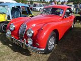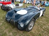 The C-Type was built specifically for the race track . It used the running gear of the contemporary road-proven XK120 clothed in a lightweight tubular frame, devised by William Heynes, and clothed in an aerodynamic aluminium body designed by Malcolm Sayer. The road-going XK120’s 3.4-litre twin-cam, straight-6 engine produced between 160 and 180 bhp, but when installed in the C-Type, it was originally tuned to around 205 bhp. Early C-Types were fitted with SU carburettors and drum brakes. Later C-Types, from mid 1953, were more powerful, using triple twin-choke Weber carburettors and high-lift camshafts. They were also lighter, and braking performance was improved with disc brakes on all four wheels, which were something of a novelty at the time, though their adoption started to spread quite quickly after Jaguar had used them. The lightweight, multi-tubular, triangulated frame was designed by William Heynes. Malcolm Sayer designed the aerodynamic body. Made of aluminium in the barchetta style, it is devoid of road-going items such as carpets, weather equipment and exterior door handles. The C-Type was successful in racing, most notably at the Le Mans 24 hours race, which it won twice. In 1951 the car won at its first attempt. The factory entered three, whose driver pairings were Stirling Moss and Jack Fairman, Leslie Johnson and triple Mille Miglia winner Clemente Biondetti, and the eventual winners, Peter Walker and Peter Whitehead. The Walker-Whitehead car was the only factory entry to finish, the other two retiring with lack of oil pressure. A privately entered XK120, owned by Robert Lawrie, co-driven by Ivan Waller, also completed the race, finishing 11th. In 1952 Jaguar, worried by a report about the speed of the Mercedes-Benz 300SLs that would run at Le Mans, modified the C-Type’s aerodynamics to increase the top speed. However, the consequent rearrangement of the cooling system made the cars vulnerable to overheating, and all three retired from the race. The Peter Whitehead-Ian Stewart and Tony Rolt/Duncan Hamilton cars blew head gaskets, and the Stirling Moss-Peter Walker car, the only one not overheating having had a full-sized radiator hurriedly fitted, lost oil pressure after a mechanical breakage. Testing by Norman Dewis at MIRA after the race proved that the overheating was caused more by the revisions to the cooling system than by the altered aerodynamics: the water pump pulley was undersized, so it was spinning too fast and causing cavitation; also the header tank was in front of the passenger-side bulkhead, far from the radiator, and the tubing diameter was too small at 7/8 inch. With the pump pulley enlarged, and the tubing increased to 1 1/4 inch, the problem was eliminated. The main drawback of the new body shape was that it reduced downforce on the tail to the extent that it caused lift and directional instability at speeds over 120 mph on the Mulsanne Straight. These cars had chassis numbers XKC 001, 002 and 011. The first two were dismantled at the factory, and the third survives in normal C-type form. In 1953 C-Types won again, and also placed second and fourth. This time the body was in thinner, lighter aluminium and the original twin H8 sand cast SU carburettors were replaced by three DCO3 40mm Webers, which helped boost power to 220 bhp. Further weight was saved by using a rubber bag fuel tank, lighter electrical equipment and thinner gauge steel for some of the chassis tubes . Duncan Hamilton and Tony Rolt won the race at 105.85 mph (170.35 km/h) – the first time Le Mans had been won at an average of over 100 miles per hour (161 km/h). 1954, the C-Type’s final year at Le Mans, saw a fourth place by the Ecurie Francorchamps entry driven by Roger Laurent and Jacques Swaters. Between 19951 and 1953, a total of 53 C-Types were built, 43 of which were sold to private owners mainly in the US. When new, the car sold for about $6,000, approximately twice the price of an XK120. Genuine cars have increased in value massively in recent years, however buyers do need to be aware that replicas have been produced by a number of companies, though even these are far from cheap to buy thesedays. Cars with true racing provenance are well into the millions now. A C-Type once owned and raced by Phil Hill sold at an American auction in August 2009 for $2,530,000 and another C-type was sold at the Pebble Beach auction in 2012 for $3,725,000, More recently an unrestored C-Type that raced at Le Mans has sold for £5,715,580, during the Grand Prix Historique race meeting in Monaco. In August 2015, an ex-Ecurie Ecosse Lightweight C-type, chassis XKC052 and the second of only three works lightweights, driven by Peter Whitehead and Ian Stewart to fourth at the 1953 Le Mans 24 Hours, fetched £8.4 million at auction in California.