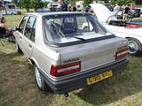 Eighteen months after the debut of the second generation R5, the “supercinq” as it is sometimes known, Renault produced their response to Peugeot’s 205 GTi, the R5 GT Turbo. Many were convinced that this was a better car, though it did have a reputation for unreliability and hot starting was quite an issue with fuel vaporising in the carburettor as the engine cooled. It used a modified four cylinder, eight-valve Cléon 1,397 cc engine, a pushrod unit dating back to the 1962 original (in 1,108 cc form). It was turbocharged with an air-cooled Garrett T2 turbocharger. Weighing a mere 850 kg (1,874 lb), and producing 113 hp, the GT Turbo had an excellent power-to-weight ratio, permitting it to accelerate from a standstill to 60 mph in 7.5 seconds. To differentiate it from the standard 5, it came with blocky plastic side skirts. Unfortunately, turbo lag was an issue, along with poor hot starting, and it was considered rather difficult to control. The same engine was used, with similar issues, in the Renault 9 and 11 Turbos. In 1987, the facelifted Phase II was launched. Major changes in the Phase II version included installing watercooling to the turbocharger, aiding the Phase I’s oil-cooled setup, which extended the life of the turbo. It also received a new ignition system which permitted it to rev 500 rpm higher. These changes boosted engine output up to over 118 hp. Externally, the car was revamped, with changes (including new bumpers and arches) that reduced the car’s drag coefficient from 0.36 to 0.35. Giving the Phase II a 0–100 km/h time of 7.5 secs. In 1989 the GT Turbo received a new interior, and in 1990 the special edition Raider model (available only in metallic blue, with different interior and wheels) was launched. In late 1991 the Renault 5 GT Turbo was discontinued, superseded by the Clio 16v and the Clio Williams. Survival rate of the R5 GT Turbo is low and few cars are particularly original, so this was nice one to behold.