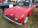 Replacement for the TR4 was – predictably – the Triumph TR5, which was built for a 13-month period between August 1967 and September 1968. Visually identical to the Michelotti styled TR4,the TR5 hid the main differences under the body. The most significant change from the TR4 was the 2.5-litre straight-6 fuel-injected engine, developing around 145 hp, and which was carried forward to the TR6. At the time, fuel injection (or PI petrol injection, as it was sometimes then called) was uncommon in road cars. Triumph claimed in their sales brochure that it was the “First British production sports car with petrol injection”. Sadly, it was also somewhat troublesome, with mechanical issues a common occurrence. A carburetted version of the TR5 named Triumph TR250 was manufactured during the same period, to be sold in place of the fuel injected car on the North American market. A few of these have now been brought over to the UK and indeed there were both TR250 and TR5 cars here. The Triumph TR250, built during the same period for the North American market, was nearly identical to the TR5. But, because of price pressures and emission regulations the TR250 was fitted with twin Zenith-Stromberg carburettors rather than the Lucas fuel injection system. The reasons for this difference came down to price pressures of the American market, and tighter emissions regulations. The TR250’s straight-six engine delivered 111 bhp , 39 bhp less than the TR5; 0–60 mph acceleration took 10.6 seconds. Standard equipment on both models included front disc brakes, independent rear suspension, rack and pinion steering and a four speed gearbox. Optional extras included overdrive and wire wheels. Both the TR5 and the TR250 were available with the “Surrey Top” hard top system: a weather protection system with rigid rear section including the rear window and removable fabric section over the driver and passenger’s heads.