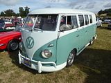 The first generation of the Volkswagen Type 2 with the split windshield, informally called the Microbus, Splitscreen, or Splittie among modern fans, was produced from 8 March 1950 through the end of the 1967 model year. From 1950 to 1956, the T1 (not called that at the time) was built in Wolfsburg; from 1956, it was built at the completely new Transporter factory in Hanover. Like the Beetle, the first Transporters used the 1100 Volkswagen air-cooled engine, an 1,131 cc 24 bhp, air-cooled flat-four-cylinder ‘boxer’ engine mounted in the rear. This was upgraded to the 1200 – an 1,192 cc 30 bhp in 1953. A higher compression ratio became standard in 1955; while an unusual early version of the 40 bhp engine debuted exclusively on the Type 2 in 1959. Any 1959 models that retain that early engine today are true survivors. Since the engine was totally discontinued at the outset, no parts were ever made available. The early versions of the T1 until 1955 were often called the “Barndoor” (retrospectively called T1a since the 1990s), owing to the enormous rear engine cover, while the later versions with a slightly modified body (the roofline above the windshield is extended), smaller engine bay, and 15″ roadwheels instead of the original 16″ ones are nowadays called the T1b (again, only called this since the 1990s, based on VW’s retrospective T1,2,3,4 etc. naming system.). From the 1964 model year, when the rear door was made wider (same as on the bay-window or T2), the vehicle could be referred to as the T1c. 1964 also saw the introduction of an optional sliding door for the passenger/cargo area instead of the outwardly hinged doors typical of cargo vans. In 1962, a heavy-duty Transporter was introduced as a factory option. It featured a cargo capacity of 1,000 kg (2,205 lb) instead of the previous 750 kg (1,653 lb), smaller but wider 14″ roadwheels, and a 1.5 litre 42 bhp DIN engine. This was so successful that only a year later, the 750 kg, 1.2 L Transporter was discontinued. The 1963 model year introduced the 1500 engine – 1,493 cc as standard equipment to the US market at 51 bhp DIN with an 83 mm bore, 69 mm stroke, and 7.8:1 compression ratio. When the Beetle received the 1.5 litre engine for the 1967 model year, its power was increased to 54 bhp DIN. German production stopped after the 1967 model year; however, the T1 still was made in Brazil until 1975, when it was modified with a 1968–79 T2-style front end, and big 1972-vintage taillights into the so-called “T1.5” and produced until 1996. The Brazilian T1s were not identical to the last German models (the T1.5 was locally produced in Brazil using the 1950s and 1960s-era stamping dies to cut down on retooling, alongside the Beetle/Fusca, where the pre-1965 body style was retained), though they sported some characteristic features of the T1a, such as the cargo doors and five-stud 205 mm (8.1 in) Pitch Circle Diameter rims. Wheel tracks varied between German and Brazilian production and with 14-inch, 15-inch and 16-inch wheel variants but commonly front track varied from 1290 mm to 1310 mm and rear track from 1370 mm to 1390 mm. Among American enthusiasts, it is common to refer to the different models by the number of their windows. The basic Kombi or Bus is the 11-window (a.k.a. three-window bus because of three side windows) with a split windshield, two front cabin door windows, six rear side windows, and one rear window. The DeLuxe model featured eight rear side windows and two rear corner windows, making it the 15-window (not available in Europe). Meanwhile, the sunroof DeLuxe with its additional eight small skylight windows is, accordingly, the 23-window. From the 1964 model year, with its wider rear door, the rear corner windows were discontinued, making the latter two the 13-window and 21-window respectively. The 23- and later 21-window variants each carry the nickname “Samba” or in Australia, officially “Alpine”. The Volkswagen Samba, in the United States also known as Sunroof Deluxe, was the most luxurious version of the T1. Volkswagen started producing Sambas in 1951. In the USA Volkswagen vans were informally classified according to the number of windows they had. This particular model had 23 and later 21 windows including eight panoramic windows in the roof (the 23 window version had additional curved windows in the rear corners). To distinguish it from the normal Volkswagen van the name Samba was coined. Instead of a sliding door at the side the Samba had two pivot doors. In addition the Samba had a fabric sunroof. At that time Volkswagen advertised with the idea of using the Samba to make tourist trips through the Alps. Sambas were painted standard in two colours. Usually, the upper part was coloured white. The two colored sections were separated by a decorative strip. Further the bus had a so-called “hat”: at the front of the van the roof was just a little longer than the car itself to block the sun for the driver. The windows had chrome tables and the van had a more comprehensive dashboard than the normal T1. When Volkswagen started producing the successor of the T1 (the T2) the company also stopped producing the Samba so there are no Sambas in later versions of the Transporter.