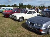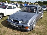 The Sierra RS Cosworth model. a very sporting version of Ford’s upper-medium sized family car, was built by Ford Europe from 1986 to 1992, the result of a Ford Motorsport project with the purpose of producing an outright winner for Group A racing in Europe. The project was defined in the spring of 1983 by Stuart Turner, then recently appointed head of Ford Motorsport in Europe, who had realised right away that Ford was no longer competitive in this area. Turner got in touch with Walter Hayes, at the time the vice-president of public relations at Ford, to get support for the project. Hayes had earlier been the driving force behind the development of the Ford GT40 that won Le Mans in 1966, and the Cosworth DFV engine that brought Ford 154 victories and 12 world championships in Formula One during the 1960s and 1970s. Hayes found the project very appealing and promised his full support. Turner then invited Ken Kohrs, vice-president of development, to visit Ford’s longtime partner, the automotive company Cosworth, where they were presented a project developed on Cosworth’s own initiative, the YAA engine. This was a twin cam, 16-valve engine based on Ford’s own T88 engine block, better known as the Pinto. This prototype proved an almost ideal basis for the engine Turner needed to power his Group A winner. Therefore, an official request for a turbocharged version (designated Cosworth YBB) capable of 180 HP on the street and 300 HP in race trim, was placed. Cosworth answered positively, but they put up two conditions: the engine would produce not less than 204 HP in the street version, and Ford had to accept no fewer than 15,000 engines. Turner’s project would only need about 5,000 engines, but Ford nevertheless accepted the conditions. The extra 10,000 engines would later become one of the reasons Ford also chose to develop a four door, second generation Sierra RS Cosworth. To find a suitable gearbox proved more challenging. The Borg-Warner T5, also used in the Ford Mustang, was chosen, but the higher revving nature of the Sierra caused some problems. Eventually Borg-Warner had to set up a dedicated production line for the gearboxes to be used in the Sierra RS Cosworth. Many of the suspension differences between the standard Sierra and the Cosworth attributed their development to what was learned from racing the turbocharged Jack Roush IMSA Merkur XR4Ti in America and Andy Rouse’s successful campaign of the 1985 British Saloon Car Championship. Much of Ford’s external documentation for customer race preparation indicated “developed for the XR4Ti” when describing parts that were Sierra Cosworth specific. Roush’s suspension and aerodynamics engineering for the IMSA cars was excellent feedback for Ford. Some production parts from the XR4Ti made their way into the Cosworth such as the speedometer with integral boost gauge and the motorsport 909 chassis stiffening plates. In April 1983, Turner’s team decided on the recently launched Sierra as a basis for their project. The Sierra filled the requirements for rear wheel drive and decent aerodynamic drag. A racing version could also help to improve the unfortunate, and somewhat undeserved, reputation that Sierra had earned since the introduction in 1982. Lothar Pinske, responsible for the car’s bodywork, demanded carte blanche when it came to appearance in order to make the car stable at high speed. Experience had shown that the Sierra hatchback body generated significant aerodynamic lift even at relatively moderate speed. After extensive wind tunnel testing and test runs at the Nardò circuit in Italy, a prototype was presented to the project management. This was based on an XR4i body with provisional body modifications in fibreglass and aluminium. The car’s appearance raised little enthusiasm. The large rear wing caused particular reluctance. Pinske insisted however that the modifications were necessary to make the project successful. The rear wing was essential to retain ground contact at 300 km/h, the opening between the headlights was needed to feed air to the intercooler and the wheel arch extensions had to be there to house wheels 10” wide on the racing version. Eventually, the Ford designers agreed to try to make a production version based on the prototype. In 1984, Walter Hayes paid visits to many European Ford dealers in order to survey the sales potential for the Sierra RS Cosworth. A requirement for participation in Group A was that 5,000 cars were built and sold. The feedback was not encouraging. The dealers estimated they could sell approximately 1,500 cars. Hayes did not give up, however, and continued his passionate internal marketing of the project. As prototypes started to emerge, dealers were invited to test drive sessions, and this increased the enthusiasm for the new car. In addition, Ford took some radical measures to reduce the price on the car. As an example, the car was only offered in three exterior colours (black, white and moonstone blue) and one interior colour (grey). There were also just two equipment options: with or without central locking and electric window lifts. The Sierra RS Cosworth was first presented to the public at the Geneva Motor Show in March 1985, with plans to release it for sale in September and closing production of the 5,000 cars in the summer of 1986. In practice, it was launched in July 1986. 5545 were manufactured in total of which 500 were sent to Tickford for conversion to the Sierra three-door RS500 Cosworth. The vehicles were manufactured in right hand drive only, and were made in Ford’s Genk factory in Belgium. Exactly 500 RS500s were produced, all of them RHD for sale in the UK only – the biggest market for this kind of Ford car. It was originally intended that all 500 would be black, but in practice 56 white and 52 moonstone blue cars were produced.To broaden the sales appeal, the second generation model was based on the 4 door Sierra Sapphire body. It was lau