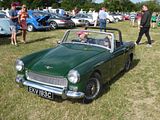 The Sprite Mark II to Mark IV were all very similar and represented the evolution of the model throughout the 1960s, The Mark II was announced at the end of May 1961. It used the same 948 cc engine with larger twin 1 1⁄4 inch SU carburettors, increasing power to 46.5 bhp. A close-ratio gearbox was fitted. The bodywork was completely revamped, with the headlights migrating to a more conventional position in the wings, either side of a full-width grille. At the rear, styling borrowed from the soon-to-be-announced MGB gave a similarly more modern look, with the added advantages of an opening boot lid and conventional rear bumper bar. The result was a much less eccentric-looking sports car, though at the expense of some 100 lbs extra weight. It followed the MG version of the car which was introduced a couple of weeks earlier as ‘the new Midget,’ reviving a model name which had been a great success for the MG Car Company in the 1930s. The Midget was to prove more popular with the public than the Sprite and by 1972 had completely supplanted it within the BMC range. In October 1962, both Sprites and Midgets were given a long-stroke 1098 cc engine. A strengthened gearbox with Porsche (baulk-ring) synchromesh was introduced to cope with the extra power – 56 bhp. Front disc brakes were also introduced at the same time and wire wheels became an option. 31,665 Mark II Sprites were made. The Mark III Sprite was also marketed as the Mark II MG Midget – differences between the two were again restricted to minor trim detailing. Although still 1098 cc, the engine had a stronger block casting, and the size of the crankshaft main bearings was increased to two inches. A new (slightly) curved-glass windscreen was introduced with hinged quarterlights and wind-up side windows. Exterior door handles were provided for the first time, with separate door locks. Though the car could now be secured, with a soft-top roof the added protection was limited. The rear suspension was modified from quarter-elliptic to semi-elliptic leaf springs, which gave a more comfortable ride for a near-negligible weight penalty as well as providing additional axle location, the upper links fitted to the quarter-elliptic models being deleted. Though scarcely sybaritic, these changes helped the Sprite and Midget compete with the recently released Triumph Spitfire. 25,905 Mark III Sprites were made. The next upgrade was presented at the London Motor Show in October 1966. Besides receiving the larger 1275 cc engine (which disappointed enthusiasts by being in a lower state of tune than that of the Mini-Cooper ‘S’), the Mark IV and its cousin the Mark III MG Midget had several changes which were more than cosmetic. Most notable is the change from a removable convertible top, which had to be stowed in the boot, to a permanently affixed, folding top of greatly improved design, which was much easier to use. Separate brake and clutch master cylinders were fitted, as car manufacturers’ thoughts began to turn to making their products safer. For the 1970 model year cast-alloy wheels were fitted and the grille was changed to resemble that fitted to the MG Midget. 22,790 Mark IV Sprites were made. The Healey connection was discontinued in 1971, so the final 1,022 Sprites built were simply Austin Sprites