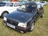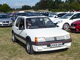Mindful of the success of the Golf GTi, in the class above, and how a small car with good handling could take more power, as the Mini Cooper had proved, Peugeot came up with the GTi in early 1984. The first models had a 1.6 litre XU5J engine, producing 105 PS, which was uprated in 1987 with a cylinder head with larger valves thus becoming XU5JA, which took the power output up to 115 bhp. Visually the car retained the good looks of the 3 door version of the regular models, but it featured plastic wheel arch extensions and trim, beefier front and rear bumper valances and judicious use of red badging and trim. The shell also underwent some minor changes, including larger wheel arches (to suit the larger wheels , and the suspension was redesigned and sat lower on the GTI with stiffer springs, different wishbones and a drop-linked anti-roll bar. Red was a dominant colour inside. The car was an instant hit. At the end of 1986, Peugeot followed up with a more potent model, the 1.9 GTi, whose XU9JA engine produced 128 PS. Internally the engine of this car and the 1.6 model are very similar, the main differences on 1.9 litre versions being the longer stroke, oil cooler, and some parts of the fuel injection system. The shorter stroke 1.6 litre engine is famed for being revvy and eager, while the 1.9 litre feels lazier and torquier. Outside the engine bay the main differences between the 1.6 GTi and the 1.9 GTi are half-leather seats on the 1.9 GTi vs. cloth seats and disc brakes all-round (1.9 GTi) vs. discs at the front and drum brakes at the back; as well as the 14-inch Speedline SL201 wheels on the 1.6 GTi vs. 15 inch Speedline SL299 alloys on the 1.9 GTi. The 205 is still often treated as a benchmark in group car tests of the newest GTI models or equivalent. Peugeot itself has never truly recreated this success in future GTI models, although they came very close with the highly regarded GTI-6 variant of the Peugeot 306.