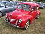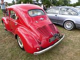 Attracting a lot of interest was this immaculate looking 4CV. There seem to be several different accounts surrounding the conception of the car, one being that it was originally conceived and designed covertly by Renault engineers during the World War II German occupation of France, when the manufacturer was under strict orders to design and produce only commercial and military vehicles, in defiance of the direction of the boss, Louis Renault, whereas another version says that in 1940, he had directed his engineering team to “make him a car like the Germans’. Regardless, the truth is that work did go on during the war, with the occupying Germans who were keeping a watch on the company turning a blind eye to what came to be known as Project 106E. Certainly those working on the project were looking closely at the Volkswagen and their new car had a similar overall architecture to that, while recalling the modern designs of the fashionable front-engined passenger cars produced in Detroit during the earlier 1940s. The first prototype had only two doors and was completed in 1942, and two more prototypes were produced in the following three years. An important part of the 4CV’s success was due to the new methodologies used in its manufacture, pioneered by Pierre Bézier, who had begun his 42-year tenure at Renault as a tool setter, moving up to tool designer and then becoming head of the Tool Design Office. As Director of Production Engineering in 1949, he designed the transfer lines (or transfer machines) producing most of the mechanical parts for the 4CV. The transfer machines were high-performance work tools designed to machine engine blocks. While imprisoned during World War II, Bézier developed and improved on the automatic machine principle, introduced before the war by GM. The new transfer station with multiple workstations and electromagnetic heads (antecedents to robots), enabled different operations on a single part to be consecutively performed by transferring the part from one station to another. The 4CV was ultimately presented to the public and media at the 1946 Paris Motor Show and went on sale a year later. Volume production was said to have commenced at the company’s Billancourt plant a few weeks before the Paris Motor Show of October 1947, although the cars were in very short supply for the next year or so. Renault’s advertising highlighted the hundreds of machine-tools installed and processes adopted for the assembly of the first high volume car to be produced since the war, boasting that the little car was now no longer a prototype but a reality. On the 4CV’s launch, it was nicknamed “La motte de beurre” (the lump of butter); this was due to the combination of its shape and the fact that early deliveries all used surplus paint from the German Army vehicles of Rommel’s Afrika Korps, which were a sand-yellow colour. Later it was known affectionately as the “quatre pattes”, “four paws”.The 4CV was initially powered by a 760 cc rear-mounted four-cylinder engine coupled to a three-speed manual transmission. In 1950, the 760 cc unit was replaced by a 747 cc version of the “Ventoux” engine producing 17 hp. Despite an initial period of uncertainty and poor sales due to the ravaged state of the French economy, the 4CV had sold 37,000 units by mid-1949 and was the most popular car in France. Across the Rhine 1,760 4CVs were sold in West Germany in 1950, accounting for 23% of that country’s imported cars, and ranking second only to the Fiat 500 on the list. The car remained in production for more than another decade. Claimed power output increased subsequently to 21 hp as increased fuel octanes allowed for higher compression ratios, which along with the relatively low weight of the car (620 kg) enabled the manufacturers to report a 0–90 km/h (0–56 mph) time of 38 seconds and a top speed barely under 100 km/h (62 mph) The engine was notable also for its elasticity, the second and top gear both being usable for speeds between 5 and 100 km/h (3 and 62 mph); the absence of synchromesh on first gear would presumably have discouraged use of the bottom gear except when starting from rest. The rear mounting of the engine meant that the steering could be highly geared while remaining relatively light; in the early cars, only 2¼ turns were needed from lock to lock. The unusually direct steering no doubt delighted some keen drivers, but road tests of the time nonetheless included warnings to take great care with the car’s handling on wet roads. In due course, the manufacturers switched from one extreme to the other, and on later cars 4½ turns were needed to turn the steering wheel from lock to lock. Early in 1953, Renault launched a stripped-down version of the 4CV bereft of anything which might be considered a luxury. Tyre width was reduced, and the dummy grille was removed from the front of the car along with the chrome headlamp surrounds. The seats were simplified and the number of bars incorporated in the steering wheel reduced from three to two. The only colour offered was grey. The car achieved its objective of retailing for less than 400,000 Francs. With the Dauphine already at an advanced stage of development it may have made sense to try and expand the 4CV’s own market coverage downwards in order to open up a clearer gap between the two models which would be produced in parallel for several years, but reaction to the down-market 4 CV, branded as the “Renault 4CV Service”, must have disappointed Renault as this version disappeared from the Renault showrooms after less than a year. The poor sales performance may have been linked to the growing popularity of the Citroën 2CV: although at this stage powered by an engine of just 375 cc and offering sclerotic performance, the 2CV was bigger than the Renault and in 1952 came with a starting price of just 341,870 francs The 4CV’s direct replacement was the Dauphine, launched in 1956, but the 4CV i