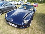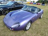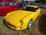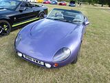 The Griffith was the first of the modern generation TVRs. First seen as a concept at the 1990 British Motor Show, it wowed the crowds sufficiently that unlike the Show Cars of precediing years, may of which were never seen again, Peter Wheeler and his small team in Blackpool immediately set about preparing it for production. It took until mid 1992 before they were ready. Like its forerunner namesakes, the Griffith 200 and Griffith 400, the modern Griffith was a lightweight (1048 kg) fibreglass-bodied, 2-door, 2-seat sports car with a V8 engine. Originally, it used a 4.0 litre 240 hp Rover V8 engine, but that could be optionally increased to a 4.3 litre 280 hp unit, with a further option of big-valve cylinder heads. In 1993, a TVR-developed 5.0 litre 340 hp version of the Rover V8 became available. All versions of the Griffith used the Lucas 14CUX engine management system and had a five-speed manual transmission. The car spawned a cheaper, and bigger-selling relative, the Chimaera, which was launched in 1993. 602 were sold in the first year and then around 250 cars a year were bought throughout the 90s, but demand started to wane, so in 2000, TVR announced that the Griffith production was going to end. A limited edition run of 100 Special Edition (SE) cars were built to mark the end of production. Although still very similar to the previous Griffith 500 model, the SE had a hybrid interior using the Chimaera dashboard and Cerbera seats. Noticeably, the rear lights were different along with different door mirrors, higher powered headlights and clear indicator lenses. Some also came with 16-inch wheels. Each car came with a numbered plaque in the glove box including the build number and a Special Edition Badge on its boot. All cars also had a unique signature in the boot under the carpet. The SEs were built between 2000 and 2002, with the last registered in 2003. A register of the last 100 SEs can be found at TVR Griffith 500 SE Register. These days, the Griffith remains a much loved classic and to celebrate the car, the owners have a meet called “The Griff Growl.”