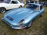 The Series 1 E Type was introduced, initially for export only, in March 1961. The domestic market launch came four months later in July 1961. The cars at this time used the triple SU carburetted 3.8-litre six-cylinder Jaguar XK6 engine from the XK150S. Earlier built cars utilised external bonnet latches which required a tool to open and had a flat floor design. These cars are rare and more valuable. After that, the floors were dished to provide more leg room and the twin bonnet latches moved to inside the car. The 3.8-litre engine was increased to 4,235 cc in October 1964. The 4.2-litre engine produced the same power as the 3.8-litre (265 bhp) and same top speed (150 mph), but increased torque approximately 10% from 240 to 283 lb/ft. Acceleration remained pretty much the same and 0 to 60 mph times were around 6.4 seconds for both engines, but maximum power was now reached at 5,400 rpm instead of 5,500 rpm on the 3.8-litre. That all meant better throttle response for drivers that did not want to shift down gears. The 4.2-litre’s block was completely redesigned, made longer to accommodate 5 mm (0.20 in) larger bores, and the crankshaft modified to use newer bearings. Other engine upgrades included a new alternator/generator and an electric cooling fan for the radiator. Autocar road tested a UK spec E-Type 4.2 fixed head coupé in May 1965. The maximum speed was 153 mph, the 0–60 mph time was 7.6 seconds and the 1⁄4 mile from a standing start took 15.1 seconds. They summarised it as “In its 4.2 guise the E-Type is a fast car (the fastest we have ever tested) and offers just about the easiest way to travel quickly by road.”. Motor magazine road tested a UK spec E-Type 4.2 fixed head coupé in Oct 1964. The maximum speed was 150 mph, the 0–60 mph time was 7 seconds and the 1⁄4 mile time was 14.9 seconds. They summarised it as “The new 4.2 supersedes the early 3.8 as the fastest car Motor has tested. The absurd ease which 100 mph can be exceeded in a 1⁄4 mile never failed to astonish. 3,000 miles (4,828 km) of testing confirms that this is still one of the world’s outstanding cars”. All E-Types featured independent coil spring rear suspension designed and developed by R J Knight with torsion bar front ends, and four wheel disc brakes, in-board at the rear, all were power-assisted. The Coventry engineers spared nothing with regards to high automotive technology in braking. Like several British car builders of the middle and late 1950s, the four-wheel disc brakes were also used in that era by Austin-Healey, MG,putting the British far ahead of Ferrari, Maserati, Alfa Romeo, Porsche, and Mercedes-Benz. Even Lanchester tried an abortive attempt to use copper disc brakes in 1902. Jaguar was one of the first vehicle manufacturers to equip production cars with 4 wheel disc brakes as standard from the XK150 in 1958. The Series 1 (except for late 1967 models) can be recognised by glass-covered headlights (up to 1967), small “mouth” opening at the front, signal lights and tail-lights above bumpers and exhaust tips under the number plate in the rear. 3.8-litre cars have leather-upholstered bucket seats, an aluminium-trimmed centre instrument panel and console (changed to vinyl and leather in 1963), and a Moss four-speed gearbox that lacks synchromesh for first gear (“Moss box”) on all except very last cars. 4.2-litre cars have more comfortable seats, improved brakes and electrical systems, and,obviously, an all-synchromesh Jaguar designed four-speed gearbox. 4.2-litre cars also have a badge on the boot proclaiming “Jaguar 4.2 Litre E-Type” (3.8 cars have a simple “Jaguar” badge). Optional extras included chrome spoked wheels and a detachable hard top for the OTS. When leaving the factory the car was originally fitted with Dunlop 6.40 × 15-inch RS5 tyres on 15 × 5K wire wheels (with the rear fitting 15 × 5K½ wheels supplied with 6.50 X15 Dunlop Racing R5 tyres in mind of competition). Later Series One cars were fitted with Dunlop 185 – 15 SP41 or 185 VR 15 Pirelli Cinturato as radial ply tyres. A 2+2 version of the fastback coupé was added in 1966. The 2+2 offered the option of an automatic transmission. The body is 9 in (229 mm) longer and the roof angles are different. The roadster and the non 2+2 FHC (Fixed Head Coupé) remained as two-seaters. Less widely known, right at the end of Series 1 production, but prior to the transitional “Series 1½” referred to below, a small number of Series 1 cars were produced with open headlights. These Series 1 cars had their headlights modified by removing the covers and altering the scoops they sit in, but these Series 1 headlights differ in several respects from those later used in the Series 1½ (or 1.5), the main being they are shorter at 143 mm from the Series 1½ at 160 mm. Production dates on these machines vary but in right-hand drive form production has been verified as late as July 1968. They are not “rare” in the sense of the build of the twelve lightweights, but they are certainly uncommon; they were not produced until January 1967 and given the foregoing information that they were produced as late as July 1968, it appears that there must have been an overlap with the Series 1.5 production, which began in August 1967 as model year 1968 models. These calendar year/model year Series 1 E-Types are identical to other 4.2-litre Series 1 examples in every respect except for the open headlights; all other component areas, including the exterior, the interior, and the engine compartment are the same, with the same three SU carburettors, polished aluminium cam covers, center dash toggle switches, etc. Following the Series 1 there was a transitional series of cars built in 1967–68 as model year 1968 cars, unofficially called “Series 1½.” Due to American pressure the new features were not just open headlights, but also different switches (black rocker switches as opposed to the Series 1 toggle switches), de-