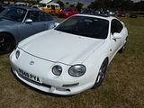 This is an example of the sixth, and penultimate generation Celica. Launched in October 1993, the styling of this version was quite different from the car it replaced. Initially it was offered in notchback coupe or liftback form, with a convertible coming later, though the 2 door Coupe was not sold in the UK. ST and GT trims were offered, with the former using a new 1.8 litre 4 cylinder engine and the latter using the larger 2.2 litre that had been in its predecessor. There was also a GT-Four version, the most powerful Celica to date, which produced 239 hp in export versions from an updated 3S-GTE engine. Influenced strongly by Toyota Team Europe, Toyota’s factory team in the World Rally Championship, the final version of the GT-Four included improvements such as an all-aluminium bonnet to save weight, four-channel ABS (with G-force sensor), an improved turbocharger (incorrectly known by enthusiasts as the CT20B), and Super Strut Suspension. The 2500 homologation cars built to allow Toyota to enter the GT-Four as a Group A car in the World Rally Championship also sported extras such as all of the plumbing required to activate an anti-lag system, a water spray bar for the Intercooler’s front heat exchanger, a water injection system for detonation protection, a hood spoiler mounted in front of the windscreen to stop hood flex at high speed and the standard rear spoiler mounted on riser blocks. The car proved to be quite competitive in the 1995 World Championship. However, the team was banned from competition for a year after the car’s single victory due to turbocharger fixing – a device that meant there was no air path restriction on the intake – when the jubilee clip was undone this would flick back into place so as to go un-noticed by inspectors. Toyota has always claimed that they knew nothing of the fix – but opponents say it was one very cleverly engineered device. In some respects this car was a true sports car; in order to qualify for rallying it has a lot of special features and a unique strut arrangement. A minor facelift was applied for 1996, with new bumpers, a smaller air dam and revised rear spoiler. This version of the Celica was replaced in 1999 by the last car to bear the name.