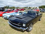 Drawing on inspiration from the mid-engined Ford Mustang I concept vehicle, Lee Iacocca ordered development of a new “small car” to vice-president of design at Ford, Eugene Bordinat. Bordinat tasked Ford’s three design studios (Ford, Lincoln-Mercury, and Advanced Design) to create proposals for the new vehicle. The design teams had been given five goals for the design of the Mustang: It would seat four, have bucket seats and a floor mounted shifter, weigh no more than 2,500 pounds (1,100 kg) and be no more than 180 inches (4,572 mm) in length, sell for less than $2,500, and have multiple power, comfort, and luxury options. The Lincoln–Mercury design studio ultimately produced the winning design in the intramural contest, under Project Design Chief Joe Oros and his team of L. David Ash, Gale Halderman, and John Foster. Development of the Mustang was completed in a record 18 months from September 1962 to March 1964. and Iacocca himself championed the project as Ford Division general manager. The styling is often credited to one person, and that is not accurate, as this was very much a team effort, it has been reported by those involved. To decrease developmental costs, the Mustang used chassis, suspension, and drivetrain components derived from the Ford Falcon and Fairlane. It used a unitised platform-type frame from the 1964 Falcon, and welded box-section side rails, including welded crossmembers. Although hardtop Mustangs accounted for the highest sales, durability problems with the new frame led to the engineering of a convertible first, which ensured adequate stiffness. Overall length of the Mustang and Falcon was identical, although the Mustang’s wheelbase was slightly shorter. With an overall width of 68.2 in (1,732 mm), it was 2.4 in (61 mm) narrower, yet the wheel track was nearly identical. Shipping weight, approximately 2,570 lb (1,166 kg) with the straight six-cylinder engine, was also similar to the Falcon. A fully equipped V8 model weighed approximately 3,000 lb (1,361 kg). Although most of the mechanical parts were from the Falcon, the Mustang’s body was completely different; sporting a shorter wheelbase, wider track, lower seating position and lower overall height. An industry first, the “torque box” was an innovative structural system that greatly stiffened the Mustang’s construction and helped contribute to better handling. The car was launched in 17th April 1964, as a hardtop and a convertible, with the fastback version following in August. It was an instant sensation, with demand massively exceeding supply. Since it was introduced four months before the normal start of the 1965 production year and manufactured alongside 1964 Ford Falcons and 1964 Mercury Comets, the earliest Mustangs are widely referred to as the 1964½ model. Nevertheless, all “1964½” cars were given 1965 U.S. standard VINs at the time of production, and – with limited exception to the earliest of promotional materials – were marketed by Ford as 1965 models. The low-end model hardtop used a “U-code” 170 cu in (2.8 litre) straight-6 engine borrowed from the Falcon, as well as a three-speed manual transmission and retailed for US$2,368. Standard equipment for the early 1965 Mustangs included black front seat belts, a glove box light, and a padded dash board. Production began in March 1964 and official introduction following on April 17 at the 1964 World’s Fair. V8 models got a badge on the front fender that spelled out the engine’s cubic inch displacement (“260” or “289”) over a wide “V.” This emblem was identical to the one on the 1964 Fairlane. Several changes to the Mustang occurred at the start of the “normal” 1965 model year in August 1964, about four months after its introduction. These cars are known as “late 65’s”. The engine lineup was changed, with a 200 cu in (3.3 litre) “T-code” engine that produced 120 hp. Production of the Fairlane’s “F-code” 260 cu in (4.3 litre) engine ceased when the 1964 model year ended. It was replaced with a new 200 hp “C-code” 289 cu in (4.7 litre) engine with a two-barrel carburettor as the base V8. An “A-code” 225 hp four-barrel carburettor version was next in line, followed by the unchanged “Hi-Po” “K-code” 271 hp 289. The DC electrical generator was replaced by a new AC alternator on all Fords (a way to distinguish a 1964 from a 1965 is to see if the alternator light on the dash says “GEN” or “ALT”). The Mustang GT version was introduced as the “GT Equipment Package” and included a V8 engine (most often the 225 hp 289), grille-mounted fog lamps, rocker panel stripes, and disc brakes. In the interior the GT option added a different instrument panel that included a speedometer, fuel gauge, temp. gauge, oil pressure gauge and ammeter in five round dials (the gauges were not marked with numbers, however.) A four-barrel carburettor engine was now available with any body style. Additionally, reverse lights were an option added to the car from August 1964 production. In 1965, the Shelby Mustang was born, it was available only in newly introduced fastback body version with its swept-back rear glass and distinctive ventilation louvres. The standard interior features of the 1965 Mustang included adjustable driver and passenger bucket seats, an AM radio, and a floor mounted shifter in a variety of colour options. Ford added additional interior options during the 1965 model year. The Interior Decor Group was popularly known as “Pony Interior” due to the addition of embossed running ponies on the seat fronts, and also included integral armrests, woodgrain appliqué accents, and a round gauge cluster that would replace the standard Falcon instrumentation. Also available were sun visors, a (mechanical) remote-operated mirror, a floor console, and a bench seat. Ford later offered an under-dash air-conditioning unit, and discontinued the vinyl with cloth insert seat option, offered 