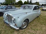 Jaguar launched the Mark IX in 1959, as a replacement for the previous Mark VIII. The early versions were identical in exterior appearance to the Mark VIII except for the addition of a chrome “Mk IX” badge to the boot lid. Later versions had a larger tail-lamp assembly with the addition of an amber section for traffic indication, visually similar to the tail-lights of the smaller Mark 2 Jaguar sedan. By the time the Mark IX reached the market, it was quite an old design, as it was based on the Mark VII which had been first seen in 1950. The Mark VII chassis came from the even earlier Jaguar Mark V but whilst the wheelbase remained the same at 10 feet, the new model’s body looked more streamlined, with integrated headlights and mudguards, a two-piece windscreen, and longer rear overhang. As on the Mark V, the rear wheels were partially covered by removable spats. Whereas the Mark V had a prewar engine originally developed by the Standard Motor Company, the Mark VII was powered by the newly developed XK engine, which had first been seen in the 1948 XK120, with the 3442 cc straight-six providing 160 bhp, the same as in the XK120. Published performance figures for the Mark VII were based on the standard 8:1 compression ratio, but as this was unsuitable for the UK market’s low-octane Pool petrol, an engine with a lower compression ratio of 7:1 engine was optional. British motoring magazines tested the car’s performance with the higher compression ratio, using the Ostend to Brussels autoroute in Belgium, where 80 octane fuel was available. In 1952, The Motor recorded a top speed of 101 mph, 0–60 mph in 13.7 seconds and returned 17.6 miles per imperial gallon. These were impressive figures for the time, and were one reason why the car was popular in motorsport as well as on the road. When the car was being developed Jaguar thought it would find most of its customers overseas, mainly because UK car tax at that time penalised buyers of larger-engined cars. However it went into production just as Britain’s postwar economic austerity began to ease, and in 1951 the car’s enthusiastic reception in both the British and American markets prompted Jaguar to relocate production to larger premises, at the Browns Lane plant, which had been built for wartime production as a shadow factory and was now available for immediate use. By the time the Mark VII was upgraded to M specification in 1954, 20,908 had been produced. Launched at the London Motor Show in October 1954, the Mark VII M continued with the same capacity and 8:1 compression ratio, uprated to 190 bhp. A four-speed manual gearbox was standard, while the Borg Warner automatic, introduced in 1953 and hitherto available only on exported Mark VIIs, now became optional for British buyers. Distinguishing the Mark VII M from its predecessor, circular grilles over the horns were installed below the headlights in place of the former integrated auxiliary lamps, which were moved slightly further apart and mounted on the bumper. Both bumpers now wrapped further around the sides of the car. In 1956, with the advent of the Suez Crisis Britain anticipated fuel rationing, and bubble cars appeared on the streets. Jaguar switched focus to their smaller saloons (the Mark I 2.4 had been introduced in 1955), and neither the Mark VII M nor any of its increasingly powerful but fuel-thirsty successors would match the production volumes of the original Jaguar Mark VII. Nevertheless, before it was superseded by the Mark VIII, the Mark VII M achieved 10,061 sales during its two-year production run. The Mark VII was succeeded by the Mark VIII i 1956, and although this looked very similar, there were plenty of detailed differences, The interior fittings were more luxurious than those of the Mark VII. Distinguishing visually between the models is facilitated by changes to the front grille, the driving or fog lamps being moved from the front panel to the horizontal panel between bumper and front panel, larger rear lamps and most obviously a curved chrome trim strip below the waistline which allowed the factory to offer a variety of two-tone paint schemes. In addition the new car had rear spats that were cut back to display more of the rear wheels and featured a one-piece slightly curved windscreen, where the Mark VII had incorporated a two-piece front screen of flat glass. Just 6227 examples were made before the introduction of the Mark IX. The new car had a larger 3.8 litre 190 bhp version of the XK engine Standard transmission was a four-speed manual system: options included overdrive, but most cars were built with a Borg Warner three-speed automatic box. The Mark IX was the first production Jaguar to offer four-wheel servo-assisted Dunlop disc brakes and recirculating ball power steering, which were now standard equipment. The brake system included a vacuum reserve tank to preserve braking in the event that the engine stalled. On models with automatic transmission, the brakes were equipped with an electromagnetic valve that maintained brake pressure at rest when the brake pedal was released to prevent the car from rolling back on an incline, hence its name “Hill Holder”. The Hill Holder was often troublesome (failing to release the brakes when the accelerator was depressed) and was disconnected on most cars without ill effect. The power steering was driven by a Hobourn-Eaton pump, operating at 600-650 psi. It was attached to the back of the generator and allowed the steering to be geared up to 3.5 turns lock-to-lock as against the 4.5 turns for the Mark VII and VIII models. The sunshine roof became a standard fitting for the UK market. The interior was in the same luxurious mode with extensive use of leather, walnut wood trim and deep pile carpet. A range of single and duo-tone paint schemes was offered. 10,009 examples of the Mark IX were made before its replacement in 1961 by the lower and more contemporary-styled Mark X.