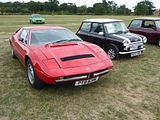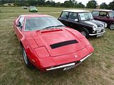 The Merak was introduced at the 1972 Paris Auto Show, over a year after the Bora, a car whose front part of the bodyshell up to the doors, it shares. The front ends are differenced mainly by the use of dual chrome bumpers in place of twin trapezoidal grilles, but the similarities end at the B-pillar. Unlike its bigger sister the Merak doesn’t have a true, fully glassed fastback, but rather a cabin ending abruptly with a vertical rear window and a flat, horizontal engine bonnet pierced by four series of ventilation slats. Giugiaro completed the vehicle’s silhouette by adding open flying buttresses, visually extending the roofline to the tail. The main competitors of the Merak were the similarly Italian, mid-engined, 3-litre and 2+2 Dino 308 GT4 and Lamborghini Urraco P250. However unlike its transverse V8-engined rivals the Merak used a more compact V6, that could therefore be mounted longitudinally. Having been designed during the Citroën ownership of Maserati, certain Citroën hydropneumatic systems were used in the Merak, as for the Bora. These included the braking system and the clutch which were both hydraulically assisted and operated, and the pop-up headlights were hydraulically actuated. After 1976, when the French manufacturer gave up control of Maserati, the Citroën-derived parts were gradually replaced by more conventional systems. In 1977 Alejandro de Tomaso purchased Maserati and the Bora was discontinued after a production run of less than 600 cars, while the Merak remained on sale for six more years. The Merak’s V6 engine descended from the 2.7 litre Tipo C.114 originally designed by Giulio Alfieri in 1967 for use in the Citroën SM, that was bored out to 91.6 mm to displace 2,965 cc. It was a chain-driven double overhead camshaft, 12-valve unit featuring an unusual 90° angle between the cylinder banks. The lubrication system used a wet sump and an oil cooler. This V6 did not end its days on the Merak: it was later modified and made into the first ever production twin-turbocharged engine in the Biturbo, ending its career in the 1990s Ghibli after reaching the highest specific output of any production engine at the time. The powerplant was mounted longitudinally behind the passenger compartment, and joined through a single-plate dry clutch to a 5-speed, all synchromesh Citroën transaxle gearbox and a limited-slip differential. The original Merak’s three-litre engine produced 190 PS at 6000 rpm. Three twin-choke Weber carburettors (one 42 DCNF 31 and two 42 DCNF 32) fed the engine, and the compression ratio was 8.75:1. Maserati declared a top speed of over 240 km/h (149 mph). Early Meraks (1972 to 1975) were fitted with the Citroën SM’s dashboard, characterised by oval instrument gauges inset in a brushed metal fascia and a single-spoke steering wheel. 630 were made up to 1974. The lightened and more powerful Merak SS (Tipo AM122/A) was introduced at the 41st Geneva Motor Show in March 1975, although it did not enter production until the next year. It featured a 50 kg weight reduction and a 30 PS power increase to 220 PS (217 hp), thanks to the adoption of three larger 44 DCNF 44 carburettors and a higher 9:1 compression ratio. The SS was recognisable from a black grille between the pop-up headlights. A Maserati-designed upper fascia with round instruments and a four-spoke steering wheel replaced the previous SM-derived interior furniture. Later cars were bestowed with the full driver-oriented dashboard and three-spoke padded steering wheel of the Maserati Bora. The US-spec version of the Merak SS also saw a return to traditional hydraulics, eliminating the last of the Citroen high pressure system. 1000 units of the SS had been made by 1983, when all Merak production ceased. A third version of the Merak was made, In November 1977 at the Turin Auto Show, De Tomaso launched the Merak 2000 GT (Tipo AM122/D), which was basically a Merak with a smaller two-litre powerplant. It was built almost exclusively for the Italian market, where a newly introduced law strongly penalised cars with engine capacity over 2000 cc by subjecting them to a 38% Value Added Tax against the usual 19% VAT. The Merak’s competitors already offered similar two-litre models, specifically the Urraco P200 and Dino 208 GT4. The Merak 2000 GT featured a 1,999 cc engine generating 170 PS (168 hp) at 7000 rpm. Colour choice was limited to two shades: metallic light blue or gold. The two-litre cars were also distinguished by a black tape stripe running just below the mid-body character line, matte black bumpers in place of the usual chrome and the absence of the front spoiler, available as an optional. The SS’s front bonnet with the grille between the headlights was used on 2000 GTs. When production ended in 1983 just 200 Meraks 2000 GT had been made. Although a total of 1830 Merak models were made, they are rare cars now. Their low values meant that when they went wrong, which they inevitably did, it was not economic to repair or restore them, and a large number have been scrapped, which is a pity, as this is a great looking car.