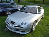 This fabulous 916 Series GTV belongs to event organiser Steve Dymoke, who is a real Alfa fan. This is a low mileage car and it is immaculate! The 916 Series GTV and Spider were conceived to replace two very different models in the Alfa range. First of these was the open topped 105 Series Spider which had been in production since 1966 and by the 1990s was long overdue a replacement. Alfa decided to combine a follow on to the Alfetta GTV, long out of production, with a new Spider model, and first work started in the late 1980s. The task was handed to Pininfarina, and Enrico Fumia’s initial renderings were produced in September 1987, with the first clay models to complete 1:1 scale model made in July 1988. Fumia produced something rather special. Clearly an Italian design, with the Alfa Romeo grille with dual round headlights, recalling the Audi-based Pininfarina Quartz, another design produced by Enrico Fumia back in 1981, the proposal was for a car that was low-slung, wedge-shaped with a low nose and high kicked up tail. The back of the car is “cut-off” with a “Kamm tail” giving improved aerodynamics. The Spider would share these traits with the GTV except that the rear is rounded, and would feature a folding soft-top with five hoop frame, which would completely disappear from sight under a flush fitting cover. An electric folding mechanism would be fitted as an option. Details included a one-piece rear lamp/foglamp/indicator strip across the rear of the body, the minor instruments in the centre console angled towards the driver. The exterior design was finished in July 1988. After Vittorio Ghidella, Fiat’s CEO, accepted the design, Alfa Romeo Centro Stile under Walter de Silva was made responsible for the completion of the detail work and also for the design of the interiors, as Pininfarina’s proposal was not accepted. The Spider and GTV were to be based on the then-current Fiat Group platform, called Tipo Due, in this case a heavily modified version with an all new multilink rear suspension. The front suspension and drivetrain was based on the 1992 Alfa Romeo 155 saloon. Chief engineer at that time was Bruno Cena. Drag coefficient was 0.33 for the GTV and 0.38 for the Spider. Production began in late 1993 with four cars, all 3.0 V6 Spiders, assembled at the Alfa Romeo Arese Plant in Milan. In early 1994 the first GTV was produced, with 2.0 Twin Spark engine. The first premiere was then held at the Paris Motor Show in 1994. The GTV and Spider were officially launched at the Geneva Motor Show in March 1995 and sales began the same year. The cars were well received. At launch, many journalists commented that Alfa had improved overall build quality considerably and that it came very close to equalling its German rivals. I can vouch for that, as I owned an early GTV for eighteen months, and it was a well built and reliable car. In 1997 a new engine, a 24-valve 3.0 litre V6, was available for the GTV along with bigger, 12.0 inch brakes and red four-pot calipers from Brembo. The console knobs were changed from round central to rectangle ones and to a three-spoke steering wheel. Some versions were upgraded with different front bumper mesh to bring the wind noise down to 74 dBA. In May 1998 the cars were revamped for the first time, creating the Phase 2 models. Most of the alterations were inside. The interior was changed with new centre console, painted letters on skirt seals, changed controls and switches arrangement and different instrument cluster. Outside, the main changes included chrome frame around the grille and colour-coded side skirts and bumpers. A new engine was introduced, the 142 hp 1.8 Twin Spark, and others were changed: the 2.0 Twin Spark was updated with a modular intake manifold with different length intakes and a different plastic cover. Power output of the 2.0 TS was raised to 153 hp. Engines changed engine management units and have a nomenclature of CF2. The dashboard was available in two new colours in addition to the standard black: Red Style and Blue Style, and with it new colour-coded upholstery and carpets. The 3.0 24V got a six-speed manual gearbox as standard and the 2.0 V6 TB engine was now also available for the Spider. August 2000 saw the revamp of engines to comply with new emission regulations, Euro3. The new engines were slightly detuned, and have a new identification code: CF3. 3.0 V6 12V was discontinued for the Spider and replaced with 24V Euro3 version from the GTV. 2.0 V6 Turbo and 1.8 T.Spark were discontinued as they did not comply with Euro3 emissions. By the 2001-2002 model year, only 2 engines were left, the 2.0 Twin.Spark and 3.0 V6 24V, until the Phase 3 engine range arrived. The Arese plant, where the cars had been built, was closing and, in October 2000, the production of GTV/Spider was transferred to Pininfarina Plant in San Giorgio Canavese in Turin. In 2003 there was another and final revamp, creating the Phase 3, also designed in Pininfarina but not by Enrico Fumia. The main changes were focused on the front with new 147-style grille and different front bumpers with offset numberplate holder. Change to the interior was minimal with different centre console and upholstery pattern and colours available. Instrument illumination colour was changed from green to red. Main specification change is an ASR traction control, not available for 2.0 TS Base model. New engines were introduced: 163 hp 2.0 JTS with direct petrol injection and 237 hp 3.2 V6 24V allowing a 158 mph top speed. Production ceased in late 2004, though some cars were still available for purchase till 2006. A total of 80,747 cars were made, and sales of the GTV and Spider were roughly equal. More V6 engined GTVs than Spiders were made, but in 2.0 guise, it was the other way round with the open model proving marginally more popular