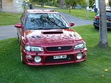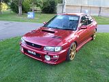 This is an Impreza WRX STi from the first generation of the Impreza family. There have been seven noted versions of the WRX dating back from Subaru’s original World Rally Cross staging vehicles. Subaru adopted the name “WRX” to stand for “World Rally eXperimental” as all WRX versions (1992 to present) feature rally inspired technology, including all wheel drive, stiffened suspensions and turbocharged four cylinder engines. The STi versions were marketed with consecutive numbers. Another way to determine the version of a WRX was to look at the chassis code. All WRX sold between 1992 and 2000 have the beginning chassis code of GC8 2/4 door sedan or GF8 hatchback; this is followed by a letter from A to G. Coupe versions share the “GC” code with sedans, except in the US, where they have a separate chassis code of “GM”. In 1994, Subaru introduced Subaru Tecnica International (STi badged) versions of the WRX in Japan. These models were upgraded from the standard WRX in many categories, including blueprinted performance-tuned engines, transmissions, and suspensions. The STi versions of the WRX were immensely successful in rallies and popular among street racers but were only sold in the Japanese market. Compared to the WRX, the STi had mostly mechanical modifications. (STi prepped Subaru rally cars since 1988 including the Legacy RS, the WRX STi Version was just the first car with an actual STi badge, though with handcrafted tuning). The WRX debuted in November 1992 with 240 PS. The centre differential was a viscous coupling type, the rear limited slip differential was a viscous type. The WRX Type RA is a stripped down version of the WRX that was available in the Japanese market for people to purchase for motorsports and tuning. Targeted for race and rally, the RA versions were generally lighter in weight; featuring reduced soundproofing, manual windows, car horn delete, no air conditioning, no anti-lock brakes, and added racing features such as more robust engines, 5th injection, intercooler water spray and shorter gearing. The WRX Type RA uses a closer ratio gearbox and a three-spoke leather steering wheel from Nardi. The ra model chassis code between GC8-(000000 to 005000) are only sold to the race team by order. Close ratio transmission is anticipated race use, the gap between each gear is brought closer together and a specific close ratio transmission is used. In Europe, the WRX was introduced as the Impreza GT, and as the Impreza Turbo 2000 (UK). It came with 208 hp. A bewildering array of different versions would follow until the release of the second generation Impreza in 2000.