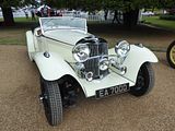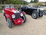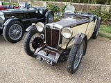 This is one the three PBs which formed the 1936 ‘Cream Cracker’ Team. The technical specification of the Team cars differed from that of a standard PB, 939c 4-cylinder engine being fitted with a side-mounted Marshall 75 supercharger supplied by twin electric fuel pumps, the rear axle having straight-cut gears with heavy-duty half-shafts and Hartford Telecontrol shock-absorbers fitted at the rear. Although standard shape, the PB bodywork for the ‘Cream Cracker’ MGs were panelled in aluminium and had lighter cycle-type wings, and were painted in the works colours of brown over cream with brown leather seats and twin spare wheels on the back.