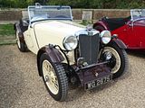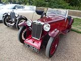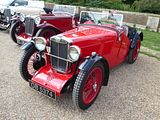 The J-type was produced from 1932 to 1934. This 2-door sports car used an updated version of the overhead camshaft, crossflow engine, used in the 1928 Morris Minor and Wolseley 10 and previously fitted in the MG M-type Midget of 1929 to 1932, driving the rear wheels through a four-speed non-synchromesh gearbox. The chassis was from the D-Type with suspension by half-elliptic springs and Hartford friction shock absorbers all round with rigid front and rear axles. The car had a wheelbase of 86″ and a track of 42″. Most cars were open two-seaters, but a closed salonette version of the J1 was also made, and some chassis were supplied to external coachbuilders. The open cars can be distinguished from the M type by having cut-away tops to the doors. Small numbers of J3 and J4 models, designed for racing, were made and the J1 was the four seater model in the range, but by far the most common were the J2 models, such as this one. The 847cc engine gave the car a top speed of 65 mph, although The Autocar managed to get nearly 20 mph more than that from a specially prepared one that they tested in 1933. The most serious of the J2’s technical failings is that has only a two-bearing crankshaft, which could break if over-revved. The overhead camshaft is driven by a vertical shaft through bevel gears, which also forms the armature of the dynamo. Thus any oil leak from the cambox seal goes into the dynamo brushgear, presenting a fire hazard. Rather than hydraulic brakes the car has Bowden cables to each drum. Although requiring no more pedal force than any other non-power-assisted drum brake if they are well maintained, the drums themselves are small, and even in period it was a common modification to replace them with larger drums from later models. Nonetheless, the car was quite popular, and at £199, was relatively affordable.