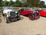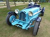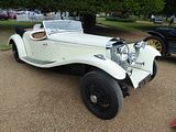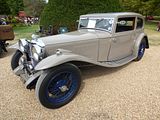 First registered on 24.03.1933, this is the sole surviving SA Vanden Plas saloon of the 28 built. Supplied by Charles Follett, in blue and grey, it features art deco handles and radiator mascot and fold out luggage platform. It was one of the Alvis team in the 1955 Silverstone Six Hour Relay Race in the hands of R. Brearley.
