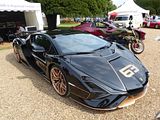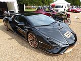 The Lamborghini Sián FKP 37 is a mid-engine hybrid sports car. Unveiled online on 3 September 2019, the Sián is the first hybrid production vehicle produced by the company. The name Sián comes from a Bolognese word which means a flash of lightning. The name was selected to highlight the fact that the car is the first production vehicle produced by the company to include a hybrid supercapacitator component. The suffix FKP 37 is related to the initials and birth year of the late Volkswagen Group chairman Ferdinand Karl Piëch. Based on the Lamborghini Aventador, the Sián FKP 37 shares its engine with the SVJ variant of the Aventador, but an electric motor integrated into the gearbox adds another 25 kW to the power output. Other modifications to the engine include the addition of titanium intake valves, a reconfigured ECU and a new exhaust system raising the power output to 785 PS. The total power output is 819 PS, making the Sián the most powerful production Lamborghini. The engine is connected to a 7-speed automated manual transmission and the car employs an electronically controlled all-wheel-drive system with a rear mechanical self-locking differential for improved handling. The power for the electric motor is stored in a supercapacitor unit instead of conventional lithium-ion batteries. The supercapacitor unit is integrated with the electric motor into the gearbox in order for a better weight distribution. Supercapacitors were chosen due to their ability to provide three times the power of a conventional lithium-ion battery of the same weight. The unit installed in the car is an evolution of the Aventador’s starter motor and can store ten times more power than the unit it is based on. A regenerative braking system helps generate enough energy to recharge the supercapacitors. The electric motor counters the effect of deceleration and provides a power boost to the driver at speeds up to 130 km/h (81 mph). The motor supports low-speed manoeuvres such as parking and reversing. The improvements made to the car help accelerate it from 0 to 100 km/h (62 mph) in 2.8 seconds and attain an electronically limited top speed of 355 km/h (221 mph) but the official top speed is to be confirmed. The exterior design incorporates a wedge shape, a trademark of famed automobile designer Marcello Gandini and mixes that with the design of the Terzo Millennio concept introduced two years prior. The Y shaped daytime running headlights are inspired by the Terzo Millennio while at the rear an active fixed rear wing with the number “63” embossed on its winglets to honour the company’s year of incorporation creates downforce. Downforce is maximised by the model’s prominent side air intakes and large carbon-fibre front splitter. A transparent “Peroscopio” glass panel runs from the centre of the roof and rolls back into the slatted engine cover adds light and visibility for the occupants, and the six hexagonal taillights are an inspiration from the Countach. Along with the wing, active cooling vanes at the rear are used which are activated by a smart material that reacts to heat. When a certain temperature is reached, the vanes rotate for extra airflow. The interior is based heavily on the Aventador’s interior, but the centre console has been tidied up and a portrait touchscreen first seen in the Huracán Evo is one of the key differences. The leather upholstery has been done by Poltrona Frau, an Italian furniture company and 3D printed parts are used on the interior for the first time. Production of the Sián FKP 37 was limited to 63 units of the coupe and 19 units of the roadster and all have already been sold. Lamborghini’s Ad Personam division will be responsible for the manufacture of the Sián. The car was officially unveiled to the public at the 2019 Frankfurt Motor Show configured in a unique “electric gold” paint. It was also renamed to be known as the Sián FKP 37 honouring late Volkswagen Group chairman Ferdinand Piëch. “FKP” are the initials of his name and “37” are the last two numbers of his birth year (i.e. 1937). In July 2020, Lamborghini unveiled the convertible roadster version of the Sián FKP 37 simply called the Sián Roadster. The car was launched in a new colour called Uranus Blue and is limited to 19 units, all of which have been already sold. Mechanically, the Roadster is similar to the coupe retaining the same engine and the supercapacitor hybrid system. At the rear, the car features 3D printed carbon fibre air vents on which the buyers can add their initials making each car unique.