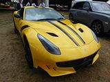 Object of many a poster on a young enthusiast’s bedroom wall when the car was new was the Testarossa and there was a couple of nice examples here. A replacement for the BB512i, the final iteration of Ferrari’s first ever mid-engined road car, the Testarossa was launched at the Paris Show in October 1984. The Pininfarina-designed car was produced until 1991, with the same basic design then going through two model revisions, with the 512 TR and later F512 M which were produced from 1992 to 1996 before the model was replaced by the front-engined 550 Maranello. Almost 10,000 Testarossas, 512 TRs, and F512 Ms were produced, making it one of the most-produced Ferrari models, despite its high price and exotic design. The Testarossa followed the same concept as the BB512, but was intended to fix some of the criticisms of the earlier car, such as a cabin that got increasingly hot from the indoor plumbing that ran between the front-mounted radiator and the midships-mounted engine and a lack of luggage space. This resulted in a car that was larger, and at 1,976 millimetres (78 in) wide the Testarossa was half a foot wider than the Boxer and immediately condemned for being too wide, though these days it does not appear anything like as wide as it did when new. This resulted in an increased wheelbase that stretched about 64 mm (2.5 in) to 2,550 mm (100 in) which was used to accommodate luggage in a carpeted storage space under the front forward-opening lid. The increase in length created extra storage space behind the seats in the cabin. Headroom was also increased with a roofline half an inch taller than the Boxer. The design came from Pininfarina with a team of designers led by design chief Leonardo Fioravanti, the designer of many contemporary Ferraris. The design was originated by Nicosia, but the guidance of Fioravanti was equally important. Being a trained aerodynamicist, Fioravanti applied his know-how to set the aerodynamics layout of the car. This meant the large side intakes were not only a statement of style but actually functional – they drew clean air to cool the side radiators and then went upward and left the car through the ventilation holes located at the engine lid and the tail. As a result, the Testarossa did not need a rear spoiler like Lamborghini’s Countach yet produced zero lift at its rear axle. The aerodynamic drag coefficient of 0.36 was also significantly better than the Lamborghini’s 0.42. Pininfarina’s body was a departure from the curvaceous boxer—one which caused some controversy. The side strakes sometimes referred to as “cheese graters” or “egg slicers,” that spanned from the doors to the rear wings were needed for rules in several countries outlawing large openings on cars. The Testarossa had twin radiators in the back with the engine instead of a single radiator up-front. In conjunction the strakes provided cool air to the rear-mounted side radiators, thus keeping the engine from overheating. The strakes also made the Testarossa wider at the rear than in the front, thus increasing stability and handling. One last unique addition to the new design was a single high mounted rear view mirror on the driver’s side. On US based cars, the mirror was lowered to a more normal placement in 1987 and quickly joined by a passenger side rear view mirror for the driver to be able to make safe easy lane changes. Like its predecessor, the Testarossa used double wishbone front and rear suspension systems. Ferrari improved traction by adding 10-inch-wide alloy rear wheels. The Testarossa drivetrain was also an evolution of the BB 512i. Its engine used near identical displacement and compression ratio, but unlike the BB 512i had four-valve cylinder heads that were finished in red. The capacity was 4,943 cc, in a flat-12 engine mid mounted. Each cylinder had four valves, lubricated via a dry sump system, and a compression ratio of 9.20:1. These combined to provide a maximum torque of 490 Nm (361 lb/ft) at 4500 rpm and a maximum power of 390 hp at 6300 rpm. That was enough to allow the Testarossa to accelerate from 0–60 mph in 5.2 seconds and on to 100 mph. The original Testarossa was re-engineered for 1992 and released as the 512 TR, at the Los Angeles Auto Show, effectively as a completely new car, with an improved weight distribution of 41% front: 59% rear. The F512 M was introduced at the 1994 Paris Auto Show, with the M standing for “modificata”. That car is easy to spot as it lost the pop-up headlights and gained awkward glazed in units. Seen here was a 512TR.