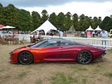The McLaren Speedtail is a limited-production hybrid sports car manufactured by McLaren Automotive, revealed on October 26, 2018. This car is the fourth edition in the McLaren Ultimate Series, after the Senna, the P1, and the F1. The car is also part of the 18 new cars or derivatives that McLaren will launch as part of its Track22 business plan. The Speedtail is powered by a modified M840T from the 720S and a hybrid powertrain to generate 1,036 bhp. The Speedtail uses a carbon fibre monocoque, with the passenger seats integrated into the chassis, as well as dihedral doors like other McLaren models. McLaren claims that the Speedtail has a top speed of 250.4 mph (403 km/h) and can accelerate from 0–299 km/h (0–186 mph) in 12.8 seconds. The maximum torque is 848 lb/ft (1,150 Nm). The car recharges its hybrid battery while driving, though a wireless charging pad is included with the car, trickle-charging it when not in use. The Speedtail is fitted with electrochromic glass, which darkens at the push of a button, eliminating the need for sun visors and also incorporates LED lights in the interior. Similarly, the Speedtail does not feature door mirrors, instead using HD cameras mounted on the front guards that pop out when the ignition is turned on, and retract inside when the “Velocity mode” is activated, which reduces overall drag and optimizes overall performance. The front wheels feature carbon fibre static covers to further reduce drag. On the exterior, it features hydraulically actuated active rear aerodynamic control surfaces, which are formed in flexible carbon fibre and are an integral part of the rear clamshell. The Speedtail has a 3-seat layout, similar to the preceding F1, which has the driver sitting at the centre of the car, and slightly forward of the two passenger seats. On the original F1, this layout was used to provide better visibility than a conventional seating layout. The interior of the Speedtail features “directional leather finish” which McLaren says “makes it easy to slide into the seat but then subtly holds the occupant in place while they drive.” and is strong enough that it can be used in place of carpet on the floor of the Speedtail. It also features “Titanium Deposition Carbon Fibre”, which is when “a micron-thin layer of titanium is fused directly onto the weave and becomes an integral part of the carbon fibre’s construction.”, as well as Thin-Ply Technology Carbon Fibre (TPT), consisting of countless 30 micron thick layers of carbon fibre. The company also offers bespoke luggage for Speedtail owners, a practice implemented when the F1 went on sale. Testing was done in Florida at the Kennedy Space Center at the Johnny Bohmer Proving Grounds. The shuttle landing runway was used for the tests. It was also tested on tracks in Germany, Spain and Italy. In November 2018, McLaren planned to build 106 examples of the Speedtail, all of which have already been sold, at an MSRP of around £2.1 million. Due in part to its use of cameras in place of side mirrors and no side-mounted airbags, the Speedtail does not meet Federal Motor Vehicle Safety Standards (FMVSS) in the United States, even though around 35% of the total cars were bought by American buyers. A spokeswoman for the company stated that the car may be legal, pending approval by the NHTSA, to be imported into the U.S. under the “Show or Display” law, which exempts cars that are “historically or technologically significant” from FMVSS, but imposes a mileage limit of 2,500 miles in a 12-month period and registration of the vehicle with the DOT. McLaren has made it clear that they will not offer assistance with importing or registering the Speedtail in the U.S. Production of the McLaren Speedtail commenced in the United Kingdom after high-speed testing was completed by December 2019. The prototype XP2 version had “reached its terminal velocity more than 30 times,” topping out at 250 mph (403 km/h), and able to go from a standstill to 186 mph (300 km/h) in less than 13 seconds. The first deliveries, 106 cars, were slated for February 2020 to Woking, England