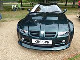 Unless you go back to the 1930s. when MG made a few high performance cars which had racing more in mind than road use, the only model to get anywhere supercar status that bears the famous roundel is the SV, and this was also represented here. This car came about after MG-Rover acquired Qvale of Italy. Taking the Qvale Mangusta as a base, a car which had been designed, but not quite made production, MG Rover allocated the project code X80 and set up a subsidiary company, MG X80 Ltd., to produce their new model. A big factor behind the project was that was seen as having the potential sales in the United States, as the Mangusta had already been homologated for the American market. The MG X80 was originally revealed as a concept car in 2001. However, the styling was considered too sedate, so when the production model, now renamed MG XPower SV, was eventually launched the following year, designer Peter Stevens had made the car’s styling more aggressive. The conversion from a clay model to a production car, including all requirements, was done in just 300 days by the Swedish company Caran. The production process was complex, partly caused by the use of carbon fibre to make the body panels. The basic body parts were made in the UK by SP Systems and then shipped to Belco Avia near Turin for assembly into body panels. These were then assembled into a complete body shell and fitted onto the box frame chassis and running gear and shipped to MG Rover’s Longbridge factory to be trimmed and finished. Several of the cars’ exterior and interior parts were borrowed from current and past Fiat models. The headlights, for example, were taken from a Punto Mk.2 and the rear lights borrowed from a Fiat Coupe. The goal had been to get a street price of under £100,000, and on launch, the base model came in well under that at £65,000, and even the uprated XPower SV-R model was priced at £83,000. Those were ambitious prices for a car bearing MG badges, though, so not surprisingly, sales were slow. It is understood that just 82 cars were produced excluding the 4 ‘XP’ pre-production prototypes. This included a few pre-production and show cars which were later dismantled before production was stopped due to lack of sales. Most were sold to private owners, with the final ones being sold to customers in early 2008.