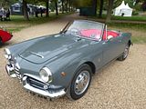 Next up was this supremely elegant Giulia Spider. Along with the equally pretty Coupe model, this started out as part of the Giulietta range, but in later life adopted Giulia badging. This the more commonly seen of the pair, the lovely Giulia Spider 1600. Alfa had followed up the 1950 launch of the 1900 Berlina with a smaller model, the Giulietta. Known as the Type 750 and later 101 Series, the Giulietta evolved into a family of models. The first to be introduced was the Giulietta Sprint 2+2 coupé at the 1954 Turin Motor Show. Designed by Franco Scaglione at Bertone, it was produced at the coachbuilder’s Grugliasco plant near Turin. A year later, at the Turin Motor Show in April 1955, the Sprint was joined by the 4-door saloon Berlina. In mid 1955, the open two-seat Giulietta Spider, featuring convertible bodywork by Pininfarina, and it was one of these achingly pretty cars that was to be seen here. Alfa replaced the Giulietta with the Giulia in 1962, but as the Coupe and Spider were not ready, the Giulietta based models were kept in production, and renamed as Giulia. They gained a larger 1600cc engine, and this meant that the bonnet need to be raised a little to accommodate the new unit, so the easy recognition beyond Giulietta and Giulia Spiders is whether there is a flat bonnet or one with a slight hump and a vent in it.