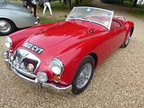 The MGA replaced the long running T Series sports cars and presented a complete styling break from MG’s earlier sports cars. Announced on 26 September 1955, the car was officially launched at the Frankfurt Motor Show. A total of 101,081 units were sold through the end of production in July 1962, the vast majority of the 58.750 cars made were exported. Only 5869 cars were sold on the home market, the lowest percentage of any British car. It was replaced by the MGB. The MGA design dates back to 1951, when MG designer Syd Enever created a streamlined body for George Philips’ TD Le Mans car. The problem with this car was the high seating position of the driver because of the limitations of using the TD chassis. A new chassis was designed with the side members further apart and the floor attached to the bottom rather than the top of the frame sections. A prototype was built and shown to the BMC chairman Leonard Lord. He turned down the idea of producing the new car as he had just signed a deal with Donald Healey to produce Austin-Healey cars two weeks before. Falling sales of the traditional MG models caused a change of heart, and the car, initially to be called the UA-series, was brought back. As it was so different from the older MG models it was called the MGA, the “first of a new line” to quote the contemporary advertising. There was also a new engine available, therefore the car did not have the originally intended XPAG unit but was fitted with the BMC corporate B-Series type allowing a lower bonnet line. The MGA convertible had no exterior door handles, however the coupe did. It was a body-on-frame design and used the straight-4 1489cc “B series” engine from the MG Magnette saloon driving the rear wheels through a 4-speed gearbox. Suspension was independent with coil springs and wishbones at the front and a rigid axle with semi-elliptic springs at the rear. Steering was by rack and pinion. The car was available with either wire-spoked or steel-disc road wheels. The 1489 cc engine fitted with twin H4 type SU Carburettors produced 68 hp at first, but was soon uprated to 72 hp. Lockheed hydraulic drum brakes were used on all wheels. A high-performance Twin-Cam model was added for 1958. It used a high-compression (9.9:1 later 8.3:1) DOHC aluminium cylinder head version of the B-Series engine producing 108 hp. Due to detonation problems, a 100 bhp low-compression version was introduced later. Four-wheel disc brakes by Dunlop were fitted, along with Dunlop peg drive knock-off steel wheels similar to wheels used on racing Jaguars, unique to the Twin-Cam and “DeLuxe” MGA 1600 and 1600 MkII roadsters. These wheels and chassis upgrades were used on a small number of the “DeLuxe” models built after Twin-Cam production came to a halt. Aside from the wheels, the only outside identifier was a “Twin-Cam” logo near the vent aside the bonnet. A careful look at the rear wheel vents would also reveal another feature unique to Twin-Cam and DeLuxe: those 4 wheel Dunlop disc brakes . The temperamental engine was notorious for warranty problems during the course of production, and sales dropped quickly. The engine suffered from detonation and burnt oil. Most of the problems with the Twin-Cam engine were rectified with the low-compression version, but by then the damage had been done. Many restored Twin-Cams are running more reliably today than they ever did during production. The Twin-Cam was dropped in 1960 after 2,111 had been produced. Production ended in April 1960, but had slowed to a trickle long before. In May 1959 the standard cars also received an updated engine, now at 1588 cc producing 79.5 bhp . At the front disc brakes were fitted, but drums remained in the rear. Externally the car was very similar to the 1500 with differences including: amber or white (depending on market) front turn indicators shared with white parking lamps, separate stop/tail and turn lamps in the rear, and 1600 badging on the boot and the cowl. 31,501 of these were produced in less than three years. A number of 1600 De Luxe versions were produced with leftover special wheels and four-wheel disc brakes of the departed Twin-Cam, or using complete modified Twincam chassis left redundant by the discontinuance of that model. Seventy roadsters and 12 coupés were built. The engine size was increased again to 1622 cc by increasing the bore from 75.4 mm to 76.2 mm for the 1961 Mark II MGA. The cylinder head was also revised with larger valves and re-engineered combustion chambers. Horsepower increased to 90 bhp. It also had a higher ratio 4:1 rear axle, which made for more relaxed high-speed driving. An inset grille and Morris Mini tail lamps appearing horizontally below the deck lid were the most obvious visual changes. 8,198 Mark II roadsters and 521 coupés were built. As with the 1600 De Luxe, there were also some Mark II De Luxe versions; 290 roadsters and 23 coupés were produced.