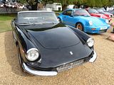 Needing little in the way of introduction, as thanks to its starring role with James Bond, this has to be one of the world’s most recognised cars, is the DB5, a couple of examples of which were on show. The DB5 was designed by the Italian coachbuilder Carrozzeria Touring Superleggera. Released in 1963, it was an evolution of the final series of DB4. The principal differences between the DB4 Series V and the DB5 are the all-aluminium engine, enlarged from 3.7 litre to 4.0litre; a new robust ZF five-speed transmission (except for some of the very first DB5s);and three SU carburettors. This engine, producing 282 bhp, which propelled the car to 145 mph, available on the Vantage version of the DB4 since March 1962, became the standard Aston Martin power unit with the launch in September 1963 of the DB5. Standard equipment on the DB5 included reclining seats, wool pile carpets, electric windows, twin fuel tanks, chrome wire wheels, oil cooler, magnesium-alloy body built to superleggera patent technique, full leather trim in the cabin and even a fire extinguisher. All models have two doors and are of a 2+2 configuration. Like the DB4, the DB5 used a live rear axle. At the beginning, the original four-speed manual (with optional overdrive) was standard fitment, but it was soon dropped in favour of the ZF five-speed. A three-speed Borg-Warner DG automatic transmission was available as well. The automatic option was then changed to the Borg-Warner Model 8 shortly before the DB6 replaced the DB5. The high-performance DB5 Vantage was introduced in 1964 featuring three Weber twin-choke 45DCOE side-draft carburettors and revised camshaft profiles, delivering greater top-end performance at the expense of overall flexibility, especially as legendary Webers are renowned as ‘full-throttle’ devices. This engine produced 315 hp. Only 65 DB5 Vantage coupés were built. Just 123 convertible DB5s were produced (also with bodies by Touring), though they did not use the typical “Volante” name until 1965. The convertible model was offered from 1963 through to 1965. Originally only 19 of the 123 DB5 Convertibles made were left-hand drive. 12 cars were originally fitted with a factory Vantage engine, and at least one further convertible was subsequently factory fitted with a DB6 specification Vantage engine. A rare factory option (actually fitted by Works Service prior to customer delivery) was a steel removable hard top. From October 1965 to October 1966, Aston Martin used the last 37 of the Aston Martin DB5 chassis’ to make another convertible model. These 37 cars were known as “Short Chassis” Volantes and were the first Aston Martins to hold the “Volante” name. Although calling it a “Short Chassis” is a bit of a misnomer as the “short” comes from comparing it to the subsequent DB6, which has a longer chassis. When compared to the DB5, it is not “short” but rather the same size, however these cars differ to the DB5 convertible models as they feature DB6 split front and rear bumpers and rear TR4 lights, as also used on the DB6. These days the DB5 is the most valuable of all the DB models from the 1960s, with many of them heading towards the £1 million pound mark.