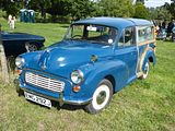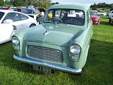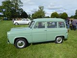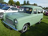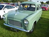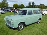The Ford Escort and Squire were produced by Ford UK from 1955 to 1959, a two-door, four-seat estate design, related to the Ford Prefect 100E four-door saloon, sharing the same 1,172 cc Ford sidevalve 36 bhp engine and other parts and the same interior trim. It was substantially shorter than both the Prefect and the closely related Ford Anglia 100E two-door saloon. It used the short front doors of the four-door model because the bodyshell was optimized for use as a panel van (which was marketed as the Thames 300E). The rear door was in two pieces split horizontally. The rear seat could be folded flat to convert from a four-seater to a load carrier. Until 1957 there were wood trim pieces screwed to the sides of the vehicle. The Squire competed in the same market segment as the Hillman Husky and Austin A30 / A35 based estate, both significantly more popular in the UK than longer estates at the time. Total production was 17,812 cars. The Ford Escort was a mechanically identical estate car with the lower trim level of the Ford Anglia. This proved more popular, and a total of 33,131 Escorts were produced between 1955 and 1961. Production of the Escort continued until 1961, two years longer than the Squire.