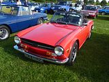 By the mid 1960s, money was tight, so when it came to replacing the TR4 and TR5 models, Triumph were forced into trying to minimise the costs of the redesign, which meant that they kept the central section of the old car, but came up with new bodywork with the front and back ends were squared off, reportedly based on a consultancy contract involving Karmann. The resulting design, which did look modern when it was unveiled in January 1969 has what is referred to as a Kamm tail, which was very common during 1970s era of cars and a feature on most Triumphs of the era. All TR6 models featured inline six-cylinder engines. For the US market the engine was carburetted, as had been the case for the US-only TR250 engine. Like the TR5, the TR6 was fuel-injected for other world markets including the United Kingdom, hence the TR6PI (petrol-injection) designation. The Lucas mechanical fuel injection system helped the home-market TR6 produce 150 bhp at model introduction. Later, the non-US TR6 variant was detuned to 125 bhp for it to be easier to drive, while the US variant continued to be carburetted with a mere 104 hp. Sadly, the Lucas injection system proved somewhat troublesome, somewhat denting the appeal of the car. The TR6 featured a four-speed manual transmission. An optional overdrive unit was a desirable feature because it gave drivers close gearing for aggressive driving with an electrically switched overdrive which could operate on second, third, and fourth gears on early models and third and fourth on later models because of constant gearbox failures in second at high revs. Both provided “long legs” for open motorways. TR6 also featured semi-trailing arm independent rear suspension, rack and pinion steering, 15-inch wheels and tyres, pile carpet on floors and trunk/boot, bucket seats, and a full complement of instrumentation. Braking was accomplished by disc brakes at the front and drum brakes at the rear. A factory steel hardtop was optional, requiring two people to fit it. TR6 construction was fundamentally old-fashioned: the body was bolted onto a frame instead of the two being integrated into a unibody structure; the TR6 dashboard was wooden (plywood with veneer). Other factory options included a rear anti-roll bar and a limited-slip differential. Some say that the car is one of Leyland’s best achievements, but a number of issues were present and remain because of poor design. As well as the fuel injection problems, other issues include a low level radiator top-up bottle and a poor hand-brake. As is the case with other cars of the era, the TR6 can suffer from rust issues, although surviving examples tend to be well-cared for. The TR6 can be prone to overheating. Many owners fit an aftermarket electric radiator fan to supplement or replace the original engine-driven fan. Also the Leyland factory option of an oil cooler existed. Despite the reliability woes, the car proved popular, selling in greater quantity than any previous TR, with 94,619 of them produced before production ended in mid 1976. Of these, 86,249 were exported and only 8,370 were sold in the UK. A significant number have since been re-imported, as there are nearly 3000 of these much loved classics on the road and a further 1300 on SORN, helped by the fact that parts and services to support ownership of a TR6 are readily available and a number of classic car owners’ clubs cater for the model.