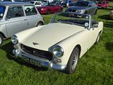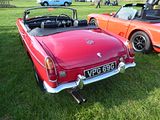 The Sprite Mark II to Mark IV were all very similar and represented the evolution of the model throughout the 1960s, The Mark II was announced at the end of May 1961. It used the same 948 cc engine with larger twin 1 1⁄4 inch SU carburettors, increasing power to 46.5 bhp. A close-ratio gearbox was fitted. The bodywork was completely revamped, with the headlights migrating to a more conventional position in the wings, either side of a full-width grille. At the rear, styling borrowed from the soon-to-be-announced MGB gave a similarly more modern look, with the added advantages of an opening boot lid and conventional rear bumper bar. The result was a much less eccentric-looking sports car, though at the expense of some 100 lbs extra weight. It followed the MG version of the car which was introduced a couple of weeks earlier as ‘the new Midget,’ reviving a model name which had been a great success for the MG Car Company in the 1930s. The Midget was to prove more popular with the public than the Sprite and by 1972 had completely supplanted it within the BMC range. In October 1962, both Sprites and Midgets were given a long-stroke 1098 cc engine. A strengthened gearbox with Porsche (baulk-ring) synchromesh was introduced to cope with the extra power – 56 bhp. Front disc brakes were also introduced at the same time and wire wheels became an option. 31,665 Mark II Sprites were made. The Mark III Sprite was also marketed as the Mark II MG Midget – differences between the two were again restricted to minor trim detailing. Although still 1098 cc, the engine had a stronger block casting, and the size of the crankshaft main bearings was increased to two inches. A new (slightly) curved-glass windscreen was introduced with hinged quarterlights and wind-up side windows. Exterior door handles were provided for the first time, with separate door locks. Though the car could now be secured, with a soft-top roof the added protection was limited. The rear suspension was modified from quarter-elliptic to semi-elliptic leaf springs, which gave a more comfortable ride for a near-negligible weight penalty as well as providing additional axle location, the upper links fitted to the quarter-elliptic models being deleted. Though scarcely sybaritic, these changes helped the Sprite and Midget compete with the recently released Triumph Spitfire. 25,905 Mark III Sprites were made. The next upgrade was presented at the London Motor Show in October 1966. Besides receiving the larger 1275 cc engine (which disappointed enthusiasts by being in a lower state of tune than that of the Mini-Cooper ‘S’), the Mark IV and its cousin the Mark III MG Midget had several changes which were more than cosmetic. Most notable is the change from a removable convertible top, which had to be stowed in the boot, to a permanently affixed, folding top of greatly improved design, which was much easier to use. Separate brake and clutch master cylinders were fitted, as car manufacturers’ thoughts began to turn to making their products safer. For the 1970 model year cast-alloy wheels were fitted and the grille was changed to resemble that fitted to the MG Midget. 22,790 Mark IV Sprites were made. The Healey connection was discontinued in 1971, so the final 1,022 Sprites built were simply Austin Sprites