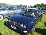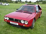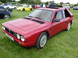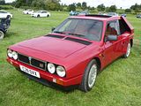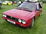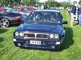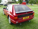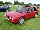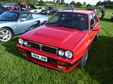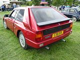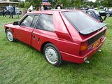 The Integrale evolved over several years, starting off as the HF Turbo 4WD that was launched in April 1986, to homologate a new rally car for Lancia who needed something to fill the void left by the cancellation of Group B from the end of 1986. The Delta HF 4X4 had a four-wheel drive system with an in-built torque-splitting action. Three differentials were used. Drive to the front wheels was linked through a free-floating differential; drive to the rear wheels was transmitted via a 56/44 front/rear torque-splitting Ferguson viscous-coupling-controlled epicyclic central differential. At the rear wheels was a Torsen (torque sensing) rear differential. It divided the torque between the wheels according to the available grip, with a maximum lockup of 70%. The basic suspension layout of the Delta 4WD remained the same as in the rest of the two-wheel drive Delta range: MacPherson strut–type independent suspension with dual-rate dampers and helicoidal springs, with the struts and springs set slightly off-centre. The suspension mounting provided more isolation by incorporating flexible rubber links. Progressive rebound bumpers were adopted, while the damper rates, front and rear toe-in and the relative angle between springs and dampers were all altered. The steering was power-assisted rack and pinion. The car looked little different from the front wheel drive models. In September 1987, Lancia showed a more sophisticated version of the car, the Lancia Delta HF Integrale 8V. This version incorporated some of the features of the Delta HF 4WD into a road car. The engine was an 8-valve 2 litre fuel injected 4-cylinder, with balancing shafts. The HF version featured new valves, valve seats and water pump, larger water and oil radiators, more powerful cooling fan and bigger air cleaner. A larger capacity Garrett T3 turbocharger with improved air flow and bigger inter-cooler, revised settings for the electronic injection/ignition control unit and a knock sensor, boosting power output to 185 bhp at 5300 rpm and maximum torque of 224 lb/ft at 3500 rpm. The HF Integrale had permanent 4-wheel drive, a front transversely mounted engine and five-speed gearbox. An epicyclic centre differential normally split the torque 56 per cent to the front axle, 44 per cent to the rear. A Ferguson viscous coupling balanced the torque split between front and rear axles depending on road conditions and tyre grip. The Torsen rear differential further divided the torque delivered to each rear wheel according to grip available. A shorter final drive ratio (3.111 instead of 2.944 on the HF 4WD) matched the larger 6.5×15 wheels to give 24 mph/1000 rpm in fifth gear. Braking and suspension were uprated to 284 mm ventilated front discs, a larger brake master cylinder and servo, as well as revised front springs, dampers, and front struts. Next update was to change the engine from 8 valves to 16. The 16v Integrale was introduced at the 1989 Geneva Motorshow, and made a winning debut on the 1989 San Remo Rally. It featured a raised centre of the bonnet to accommodate the new 16 valve engine, as well as wider wheels and tyres and new identity badges front and rear. The torque split was changed to 47% front and 53% rear. The turbocharged 2-litre Lancia 16v engine now produced 200 bhp at 5500 rpm, for a maximum speed of 137 mph and 0–100 km/h in 5.5 seconds. Changes included larger injectors, a more responsive Garrett T3 turbocharger, a more efficient intercooler, and the ability to run on unleaded fuel without modification. The first Evoluzione cars were built at the end of 1991 and through 1992. These were to be the final homologation cars for the Lancia Rally Team; the Catalytic Evoluzione II was never rallied by the factory. The Evoluzione I had a wider track front and rear than earlier Deltas. The bodyside arches were extended and became more rounded. The wings were now made in a single pressing. The front strut top mounts were also raised, which necessitated a front strut brace. The new Integrale retained the four wheel drive layout. The engine was modified to produce 210 bhp at 5750 rpm. External changes included: new grilles in the front bumper to improve the air intake for engine compartment cooling; a redesigned bonnet with new lateral air slats to further assist underbonnet ventilation; an adjustable roof spoiler above the tailgate; new five-bolt wheels with the same design of the rally cars; and a new single exhaust pipe. Interior trim was now grey Alcantara on the Recaro seats, as fitted to the earlier 16V cars; leather and air conditioning were offered as options, as well as a leather-covered Momo steering wheel. Presented in June 1993, the second Evolution version of the Delta HF Integrale featured an updated version of the 2-litre 16-valve turbo engine to produce more power, as well as a three-way catalyst and Lambda probe. A Marelli integrated engine control system with an 8 MHz clock frequency which incorporates: timed sequential multipoint injection; self-adapting injection times; automatic idling control; engine protection strategies depending on the temperature of intaken air; Mapped ignition with two double outlet coils; Three-way catalyst and pre-catalyst with lambda probe (oxygen sensor) on the turbine outlet link; anti-evaporation system with air line for canister flushing optimised for the turbo engine; new Garrett turbocharger: water-cooled with boost-drive management i.e. boost controlled by feedback from the central control unit on the basis of revs/throttle angle; Knock control by engine block sensor and new signal handling software for spark park advance, fuel quantity injected, and turbocharging. The engine now developed 215 PS as against 210 PS on the earlier uncatalysed version and marginally more torque. The 1993 Integrale received a cosmetic and functional facelift that included. new 16″ light alloy rims with 205/45 ZR 16 tyres; body colour roof moulding to underline the connection between the r