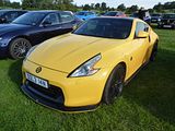 The Nissan 370Z (known as the Fairlady Z Z34 in Japan) is a 2-door, 2-seater sports car (S-segment in Europe) manufactured by Nissan Motor Company. It was announced on October 29, 2006, and was first shown at an event in Los Angeles ahead of the 2008 Greater LA Auto Show, before being officially unveiled at the show itself. The 370Z is the sixth generation of the Nissan Z-car line, succeeding the 350Z. The 370Z marks the last production car with a naturally aspirated and high-rev V6 coupled to a manual transmission. Almost every piece and component of the 370Z has been redesigned from the previous 350Z. The wheelbase is 4 in (100 mm) shorter at 100.4 in (2,550 mm) and an overall length 2.7 in (69 mm) shorter at 167.1 in (4,240 mm). The overall width has been increased by 1.3 in (33 mm), the rear track by 2.2 in (56 mm), and overall height reduced by 0.3 in (7.6 mm). The smaller exterior dimensions and use of more lightweight materials helped reduce weight. The 370Z features a front aluminium subframe, aluminium-alloy engine cradle, aluminium door panels, an all-aluminium hood, and an aluminium hatch. Front body torsional rigidity is improved by 10 percent with an extensively revised body structure, which includes a new front suspension cradle to reduce front body lateral bending, new rear structural reinforcements, and an underbody “V-bar” to help reduce rear lateral bending. Rear body torsional rigidity is improved by up to 22 percent and rear body vertical bending rigidity is improved by up to 30 percent. Additional enhancements include the use of a carbon fibre composite radiator housing and strengthening of the rear fender and hatch areas. The new structure weighs slightly less than the 350Z. The 370Z uses a front double wishbone suspension, with forged aluminium control arms and steering knuckle. The rear multi-link suspension uses a forged aluminium upper control arm, lower arm and radius rod, the toe control rod is steel and wheel carrier assembly is aluminium. The refreshed 2013 model uses new dampers with the Sport package models. The brakes have been changed from the more expensive Brembo racing brakes to Nissan branded brakes which are manufactured by Akebono. The coefficient of drag is 0.30 and 0.29 with the Sport Package, figures identical to the 350Z. The Japanese model of the 370Z Coupe went on sale in December 1, 2008. The vehicle was unveiled in the 2008 Los Angeles Auto Show, with sales of the North American model beginning at Nissan dealers in early 2009. Standard and optional equipment includes 19-inch RAYS wheels, Bluetooth, Sirius/XM satellite radio, heated electric seats, viscous limited slip differential, Bose sound system with dual subwoofers and 6-CD changer, and automatic climate control. Deliveries of the European model began in April 2009. There was also an open-topped car, the 370Z Roadster which went on sale in late summer 2009 as 2010 model year vehicle. Early models include the 370Z and 370Z Touring, with Sport Package and Navigation packages for the 370Z Touring. European models went on sale as 2010 model year vehicles. Although there were numerous limited edition models that followed, the car changed little over the next several years. The 2020 model year was the final model year for the 370Z. The line was continued by the Nissan Z (RZ34) on a modified version of the same platform.