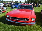 Drawing on inspiration from the mid-engined Ford Mustang I concept vehicle, Lee Iacocca ordered development of a new “small car” to vice-president of design at Ford, Eugene Bordinat. Bordinat tasked Ford’s three design studios (Ford, Lincoln-Mercury, and Advanced Design) to create proposals for the new vehicle. The design teams had been given five goals for the design of the Mustang: It would seat four, have bucket seats and a floor mounted shifter, weigh no more than 2,500 pounds (1,100 kg) and be no more than 180 inches (4,572 mm) in length, sell for less than $2,500, and have multiple power, comfort, and luxury options. The Lincoln–Mercury design studio ultimately produced the winning design in the intramural contest, under Project Design Chief Joe Oros and his team of L. David Ash, Gale Halderman, and John Foster. Development of the Mustang was completed in a record 18 months from September 1962 to March 1964. and Iacocca himself championed the project as Ford Division general manager. The styling is often credited to one person, and that is not accurate, as this was very much a team effort, it has been reported by those involved. To decrease developmental costs, the Mustang used chassis, suspension, and drivetrain components derived from the Ford Falcon and Fairlane. It used a unitised platform-type frame from the 1964 Falcon, and welded box-section side rails, including welded crossmembers. Although hardtop Mustangs accounted for the highest sales, durability problems with the new frame led to the engineering of a convertible first, which ensured adequate stiffness. Overall length of the Mustang and Falcon was identical, although the Mustang’s wheelbase was slightly shorter. With an overall width of 68.2 in (1,732 mm), it was 2.4 in (61 mm) narrower, yet the wheel track was nearly identical. Shipping weight, approximately 2,570 lb (1,166 kg) with the straight six-cylinder engine, was also similar to the Falcon. A fully equipped V8 model weighed approximately 3,000 lb (1,361 kg). Although most of the mechanical parts were from the Falcon, the Mustang’s body was completely different; sporting a shorter wheelbase, wider track, lower seating position and lower overall height. An industry first, the “torque box” was an innovative structural system that greatly stiffened the Mustang’s construction and helped contribute to better handling. The car was launched in 17th April 1964, as a hardtop and a convertible, with the fastback version following in August. It was an instant sensation, with demand massively exceeding supply. Since it was introduced four months before the normal start of the 1965 production year and manufactured alongside 1964 Ford Falcons and 1964 Mercury Comets, the earliest Mustangs are widely referred to as the 1964½ model. Nevertheless, all “1964½” cars were given 1965 U.S. standard VINs at the time of production, and – with limited exception to the earliest of promotional materials – were marketed by Ford as 1965 models. The low-end model hardtop used a “U-code” 170 cu in (2.8 litre) straight-6 engine borrowed from the Falcon, as well as a three-speed manual transmission and retailed for US$2,368. Standard equipment for the early 1965 Mustangs included black front seat belts, a glove box light, and a padded dash board. Production began in March 1964 and official introduction following on April 17 at the 1964 World’s Fair. V8 models got a badge on the front fender that spelled out the engine’s cubic inch displacement (“260” or “289”) over a wide “V.” This emblem was identical to the one on the 1964 Fairlane. Several changes to the Mustang occurred at the start of the “normal” 1965 model year in August 1964, about four months after its introduction. These cars are known as “late 65’s”. The engine lineup was changed, with a 200 cu in (3.3 litre) “T-code” engine that produced 120 hp. Production of the Fairlane’s “F-code” 260 cu in (4.3 litre) engine ceased when the 1964 model year ended. It was replaced with a new 200 hp “C-code” 289 cu in (4.7 litre) engine with a two-barrel carburettor as the base V8. An “A-code” 225 hp four-barrel carburettor version was next in line, followed by the unchanged “Hi-Po” “K-code” 271 hp 289. The DC electrical generator was replaced by a new AC alternator on all Fords (a way to distinguish a 1964 from a 1965 is to see if the alternator light on the dash says “GEN” or “ALT”). The Mustang GT version was introduced as the “GT Equipment Package” and included a V8 engine (most often the 225 hp 289), grille-mounted fog lamps, rocker panel stripes, and disc brakes. In the interior the GT option added a different instrument panel that included a speedometer, fuel gauge, temp. gauge, oil pressure gauge and ammeter in five round dials (the gauges were not marked with numbers, however.) A four-barrel carburettor engine was now available with any body style. Additionally, reverse lights were an option added to the car from August 1964 production. In 1965, the Shelby Mustang was born, it was available only in newly introduced fastback body version with its swept-back rear glass and distinctive ventilation louvres. The standard interior features of the 1965 Mustang included adjustable driver and passenger bucket seats, an AM radio, and a floor mounted shifter in a variety of colour options. Ford added additional interior options during the 1965 model year. The Interior Decor Group was popularly known as “Pony Interior” due to the addition of embossed running ponies on the seat fronts, and also included integral armrests, woodgrain appliqué accents, and a round gauge cluster that would replace the standard Falcon instrumentation. Also available were sun visors, a (mechanical) remote-operated mirror, a floor console, and a bench seat. Ford later offered an under-dash air-conditioning unit, and discontinued the vinyl with cloth insert seat option, offered 