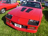 The third-generation Camaro was produced from 1981 (for the 1982 model year) to 1992. These were the first Camaros to offer modern fuel injection, Turbo-Hydramatic 700R4 four-speed automatic transmissions, five-speed manual transmissions, 14,15- or 16-inch wheels, a standard OHV 4-cylinder engine, and hatchback bodies. The cars were nearly 500 pounds (227 kg) lighter than the second generation model. The IROC-Z was introduced in 1985 and continued through 1990. National Highway Traffic Safety Administration (NHTSA) Regulations required a CHMSL (Center High Mounted Stop Lamp) starting with the 1986 model year. For 1986, the new brake light was located on the exterior of the upper center area of the back hatch glass. Additionally, the 2.5 L Iron Duke pushrod 4-cylinder engine was dropped, and all base models now came with the 2.8 L V6 (OHV). For 1987 and later, the CHMSL was either mounted inside the upper hatch glass or integrated into a rear spoiler (if equipped). In 1985, the 305 cu in (5.0 L) small block V8 was available with indirect injection called “tuned port injection” (TPI). In 1987 the L98 350 cu in (5.7 L) V8 engine became a regular option on the IROC-Z, paired with an automatic transmission only. The convertible body style returned in 1987 (absent since 1969) and all came with a special “20th Anniversary Commemorative Edition” leather map pocket. 1992 offered a “25th Anniversary Heritage Package” that included stripes and a unique spoiler plaque. Beginning in 1988, the 1LE performance package was introduced, optional on street models, and for showroom stock racing in the U.S. and Canada. The B4C or “police” package was made available beginning in 1991. This created a Z28 in more subtle RS styling.