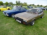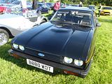 Referred to internally as “Project Carla”, and although little more than a substantial update of the Capri II, it was often referred to as the Mk III. The first cars were available in March 1978, but failed to halt a terminal decline in sales. The concept of a heavily facelifted Capri II was shown at the 1976 Geneva show: a Capri II with a front very similar to the Escort RS2000 (with four headlamps and black slatted grille), and with a rear spoiler, essentially previewed the model some time before launch. The new styling cues, most notably the black “Aeroflow” grille (first used on the Mk I Fiesta) and the “sawtooth” rear lamp lenses echoed the new design language being introduced at that time by Ford of Europe’s chief stylist Uwe Bahnsen across the entire range. Similar styling elements were subsequently introduced in the 1979 Cortina 80, 1980 Escort Mk III and the 1981 Granada Mk IIb. In addition, the Mk III featured improved aerodynamics, leading to improved performance and economy over the Mk II and the trademark quad headlamps were introduced. At launch the existing engine and transmission combinations of the Capri II were carried over, with the 3.0 S model regarded as the most desirable model although the softer, more luxurious Ghia derivative with automatic, rather than manual transmission, was the bigger seller of the two V6-engined models. Ford began to focus their attention on the UK Capri market as sales declined, realising the car had something of a cult following there. Unlike sales of the contemporary 4-door Cortina, Capri sales in Britain were to private buyers who would demand less discounts than fleet buyers allowing higher margins with the coupé. Ford tried to maintain interest in 1977 with Ford Rallye Sport, Series X, “X Pack” options from the performance oriented RS parts range. Although expensive and slow selling these proved that the press would enthusiastically cover more developed Capris with higher performance. In early 1982, the Essex 3.0 V6 which had been the range topper since September 1969 was dropped, while a new sporty version debuted at the Geneva Motor Show, called the 2.8 Injection. The new model was the first regular model since the RS2600 to use fuel injection. Power rose to a claimed 160 PS, even though tests showed the real figure was closer to 150 PS, giving a top speed of 210 km/h (130 mph), but the car still had a standard four-speed gearbox. The Capri 2.8 Injection breathed new life into the range and kept the car in production 2–3 years longer than Ford had planned. The four-speed gearbox was replaced with a five-speed unit early on – at the same time Ford swapped the dated looking chequered seats for more luxurious looking velour trim. A more substantial upgrade was introduced in 1984 with the Capri Injection Special. This development used half leather seating and included a limited slip differential. Externally the car could be easily distinguished by seven spoke RS wheels (without the customary “RS” logo since this was not an RS vehicle) and colour-coded grille and headlamp surrounds. At the same time the 2.0 Capri was rationalised to one model, the 2.0 S, which simultaneously adopted a mildly modified suspension from the Capri Injection. The 1.6 model was also reduced to a single model, the 1.6 LS. The car was finally deleted at the end of 1986, 1.9 million cars having been made over 18 years, and having been sold only in the UK for the final months of production.