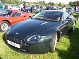 Following the unveiling of the AMV8 Vantage concept car in 2003 at the North American International Auto Show designed by Henrik Fisker, the production version, known as the V8 Vantage was introduced at the Geneva Motor Show in 2005. The two seat, two-door coupé had a bonded aluminium structure for strength and lightness. The 172.5 inch (4.38 m) long car featured a hatchback-style tailgate for practicality, with a large luggage shelf behind the seats. In addition to the coupé, a convertible, known as the V8 Vantage Roadster, was introduced later in that year. The V8 Vantage was initially powered by a 4.3 litre quad-cam 32-valve V8 which produced 380 bhp at 7,300 rpm and 409 Nm (302 lb/ft) at 5,000 rpm. However, models produced after 2008 had a 4.7-litre V8 with 420 bhp and 470 Nm (347 lbft) of torque. Though based loosely on Jaguar’s AJ-V8 engine architecture, this engine was unique to Aston Martin and featured race-style dry-sump lubrication, which enabled it to be mounted low in the chassis for an improved centre of gravity. The cylinder block and heads, crankshaft, connecting rods, pistons, camshafts, inlet and exhaust manifolds, lubrication system and engine management were all designed in house by Aston Martin and the engine was assembled by hand at the AM facility in Cologne, Germany, which also built the V12 engine for the DB9 and Vanquish. The engine was front mid-mounted with a rear-mounted transaxle, giving a 49/51 front/rear weight distribution. Slotted Brembo brakes were also standard. The original V8 Vantage could accelerate from 0 to 60 mph in 4.8 seconds before topping out at 175 mph. In 2008, Aston Martin introduced an aftermarket dealer approved upgrade package for power and handling of the 4.3-litre variants that maintained the warranty with the company. The power upgrade was called the V8 Vantage Power Upgrade, creating a more potent version of the Aston Martin 4.3-litre V8 engine with an increase in peak power of 20 bhp to 400 bhp while peak torque increased by 10 Nm to 420 Nm (310 lb/ft). This consists of the fitting of the following revised components; manifold assembly (painted Crackle Black), valved air box, right and left hand side vacuum hose assemblies, engine bay fuse box link lead (ECU to fuse box), throttle body to manifold gasket, intake manifold gasket, fuel injector to manifold seal and a manifold badge. The V8 Vantage had a retail price of GB£79,000, US$110,000, or €104,000 in 2006, Aston Martin planned to build up to 3,000 per year. Included was a 6-speed manual transmission and leather-upholstery for the seats, dash board, steering-wheel, and shift-knob. A new 6-speed sequential manual transmission, similar to those produced by Ferrari and Lamborghini, called Sportshift was introduced later as an option. An open-topped model was added to the range in 2006 and then in the quest for more power a V12 Vantage joined the range not long after. There were no fewer than 18 different versions of the car produced over its model life
