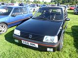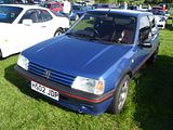 Mindful of the success of the Golf GTi, in the class above, and how a small car with good handling could take more power, as the Mini Cooper had proved, Peugeot came up with the GTi in early 1984. The first models had a 1.6 litre XU5J engine, producing 105 PS, which was uprated in 1987 with a cylinder head with larger valves thus becoming XU5JA, which took the power output up to 115 bhp. Visually the car retained the good looks of the 3 door version of the regular models, but it featured plastic wheel arch extensions and trim, beefier front and rear bumper valances and judicious use of red badging and trim. The shell also underwent some minor changes, including larger wheel arches (to suit the larger wheels , and the suspension was redesigned and sat lower on the GTI with stiffer springs, different wishbones and a drop-linked anti-roll bar. Red was a dominant colour inside. The car was an instant hit. At the end of 1986, Peugeot followed up with a more potent model, the 1.9 GTi, whose XU9JA engine produced 128 PS. Internally the engine of this car and the 1.6 model are very similar, the main differences on 1.9 litre versions being the longer stroke, oil cooler, and some parts of the fuel injection system. The shorter stroke 1.6 litre engine is famed for being revvy and eager, while the 1.9 litre feels lazier and torquier. Outside the engine bay the main differences between the 1.6 GTi and the 1.9 GTi are half-leather seats on the 1.9 GTi vs. cloth seats and disc brakes all-round (1.9 GTi) vs. discs at the front and drum brakes at the back; as well as the 14-inch Speedline SL201 wheels on the 1.6 GTi vs. 15 inch Speedline SL299 alloys on the 1.9 GTi. The 205 is still often treated as a benchmark in group car tests of the newest GTI models or equivalent. Peugeot itself has never truly recreated this success in future GTI models, although they came very close with the highly regarded GTI-6 variant of the Peugeot 306.