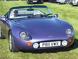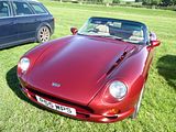 The Griffith was the first of the modern generation TVRs. First seen as a concept at the 1990 British Motor Show, it wowed the crowds sufficiently that unlike the Show Cars of precediing years, may of which were never seen again, Peter Wheeler and his small team in Blackpool immediately set about preparing it for production. It took until mid 1992 before they were ready. Like its forerunner namesakes, the Griffith 200 and Griffith 400, the modern Griffith was a lightweight (1048 kg) fibreglass-bodied, 2-door, 2-seat sports car with a V8 engine. Originally, it used a 4.0 litre 240 hp Rover V8 engine, but that could be optionally increased to a 4.3 litre 280 hp unit, with a further option of big-valve cylinder heads. In 1993, a TVR-developed 5.0 litre 340 hp version of the Rover V8 became available. All versions of the Griffith used the Lucas 14CUX engine management system and had a five-speed manual transmission. The car spawned a cheaper, and bigger-selling relative, the Chimaera, which was launched in 1993. 602 were sold in the first year and then around 250 cars a year were bought throughout the 90s, but demand started to wane, so in 2000, TVR announced that the Griffith production was going to end. A limited edition run of 100 Special Edition (SE) cars were built to mark the end of production. Although still very similar to the previous Griffith 500 model, the SE had a hybrid interior using the Chimaera dashboard and Cerbera seats. Noticeably, the rear lights were different along with different door mirrors, higher powered headlights and clear indicator lenses. Some also came with 16-inch wheels. Each car came with a numbered plaque in the glove box including the build number and a Special Edition Badge on its boot. All cars also had a unique signature in the boot under the carpet. The SEs were built between 2000 and 2002, with the last registered in 2003. A register of the last 100 SEs can be found at TVR Griffith 500 SE Register. These days, the Griffith remains a much loved classic and to celebrate the car, the owners have a meet called “The Griff Growl.”