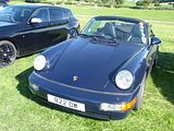It was only really with the launch in 1989 of the 964 that a truly “new” model would appear. Designed by Benjamin Dimson in 1986, it featured significant styling revisions over previous 911 models, most prominently the more integrated bumpers. The 964 was considered to be 85% new as compared to its predecessor. The first 964s available in 1989 were all wheel drive equipped “Carrera 4” models; Porsche added the rear wheel drive Carrera 2 variant to the range in 1990. Both variants were available as a coupe, Targa or Cabriolet. The 964 Carrera was the last generation sold with the traditional removable Targa roof until the 2011 991. A new naturally aspirated engine called the M64 was used for 964 models, with a flat-6 displacement of 3.6 litres. Porsche substantially revised the suspension, replacing torsion bars with coil springs and shock absorbers. Power steering and ABS brakes were added to the 911 for the first time; both were standard. The exterior bumpers and fog lamps became flush with the car for better aerodynamics. A new electric rear spoiler raised at speeds above 50 mph and lowered down flush with the rear engine lid at lower speeds. A revised interior featured standard dual airbags beginning in 1990 for all North American production cars. A new automatic climate control system provided improved heating and cooling. Revised instrumentation housed a large set of warning lights that were tied into the car’s central warning system, alerting the driver to a possible problem or malfunction. In 1992, Porsche produced a super-lightweight, rear-wheel-drive only version of the 964 dubbed Carrera RS for the European market. It was based on Porsche’s 911 “Carrera Cup” race car and harked back to the 2.7 and 3.0 RS and RSR models. It featured a revised version of the standard engine, titled M64/03 internally, with an increased power output of 260 bhp and lightweight flywheel coupled to the G50/10 transmission with closer ratios, asymmetrical Limited Slip Differential and steel synchromesh. A track-oriented suspension system with 40 mm (1.6 in) lower ride height, stiffer springs, shocks and adjustable stabiliser bars without power steering (RHD UK cars did have power steering). A stripped-out interior devoid of power windows or seats, rear seats, air conditioning, cruise control, sound deadening or a stereo system (optionally fitted) and new racing-bucket front seats were part of the package. The front boot cover was made of aluminium and the chassis was seam welded. Wheels were made of magnesium and the glass was thinner in the doors and rear window. The Carrera RS is approximately 345 pounds (155 kg) lighter than the Carrera 2 model. Also available were a heavier Touring variant (with sound deadening, power seats (optional), undercarriage protection and power windows) and an N/GT racing variant with a stripped, blank metal interior and a roll cage. They also came with optional lights on the visors. The RS was regarded as somewhat challenging to drive, though as time has gone by, everyone seems to have warmed to it.